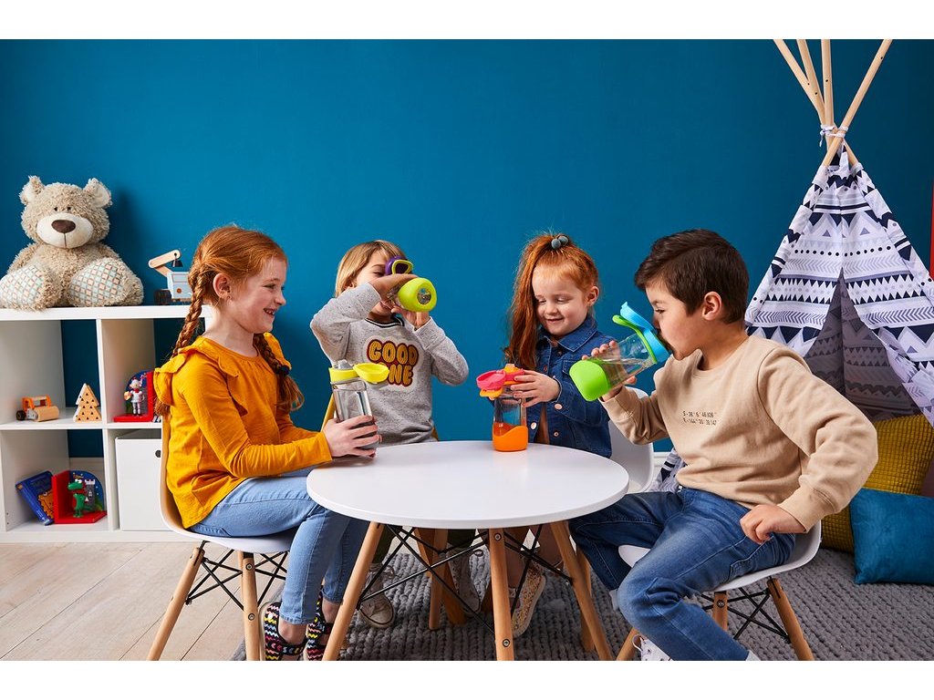 Rodiče ocení hygienické uzavírání víčka. Lahvička, pokud je zavřená, je netekoucí. Flexibilní silikonové držátko je pro děti skvělé, ať už nesou lahvičku do školy nebo na trénink. Lahvička je vyrobena z Tritanu™, je tedy lehká a odolná. Minimum komponentů umožňuje lahev snadno čistit.