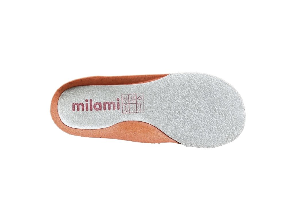 Bačkory Milami srbského výrobce, jsou lehké s ohebnou podrážkou a širokou, prostornou špičkou, proto je řadíme mezi kompromisní obuv. Nezanechávají šmouhy na podlaze, jsou tedy vhodné do školy i školky.