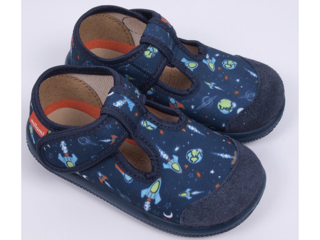 Bačkory Milami srbského výrobce, jsou lehké s ohebnou podrážkou a širokou, prostornou špičkou, proto je řadíme mezi kompromisní obuv. Nezanechávají šmouhy na podlaze, jsou tedy vhodné do školy i školky.