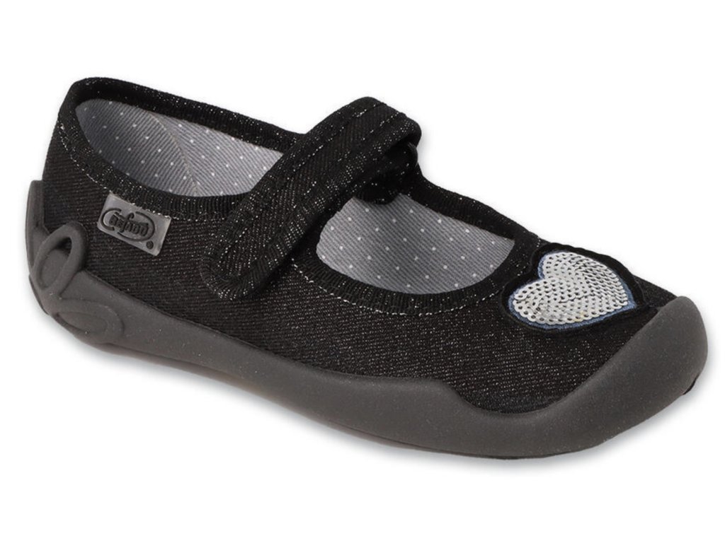 Dívčí bačkory Befado 114x538 třpytivě černé – pohodlné a lehké přezůvky vhodné do školky i na doma.