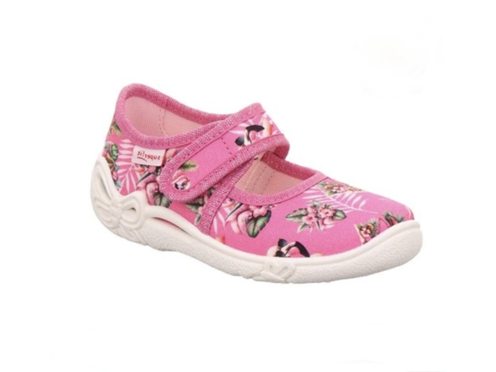 Dívčí bačkorky Superfit Belinda 1-800288-5570 růžová – lehké a prodyšné, s praktickým zapínáním na suchý zip pro snadné obouvání. Vhodné pro užší až normálně široké nožičky a pohodlné na celodenní nošení doma i ve školce.
