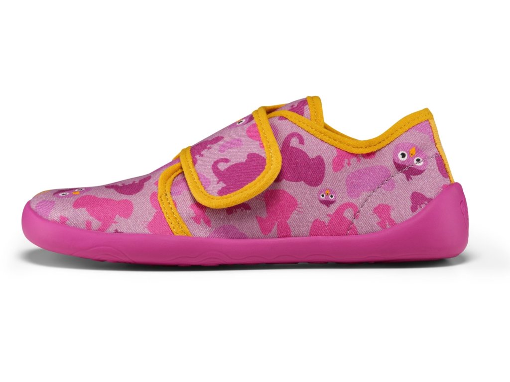 Dětské barefoot bačkory Affenzahn z organické bavlny, ideální jako přezůvky do školy či školky, ale i lehké prodyšné tenisky na ven. Extrémně lehká obuv s flexibilní neklouzavou podrážkou a dostatkem prostoru pro růst nohy. Praktické zapínání na suchý zip, označení pravé a levé boty pomocí puzzle cedulek a poutka s obrázkem zvířátka. Bez opatku, s mírným zpevněním spodní části paty gumou.