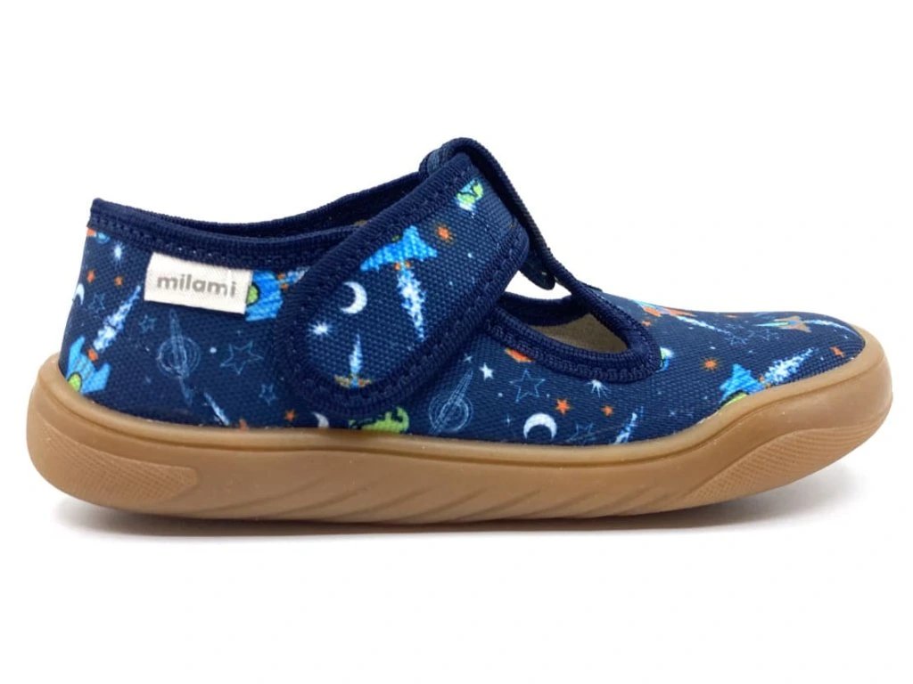 Bačkory Milami srbského výrobce, jsou lehké s ohebnou podrážkou a širokou, prostornou kulatou špičkou. Nezanechávají šmouhy na podlaze, jsou tedy vhodné do školy i školky.