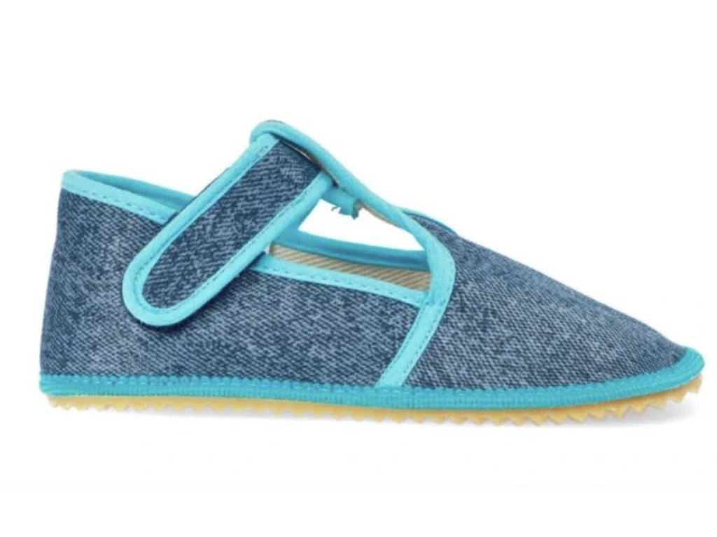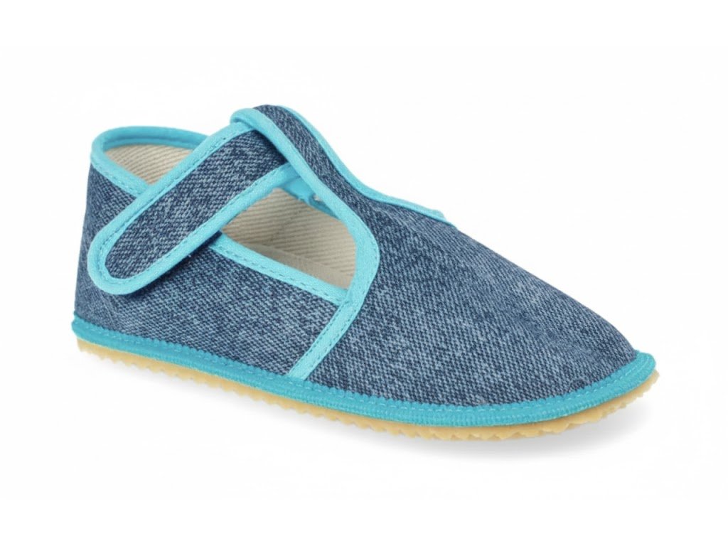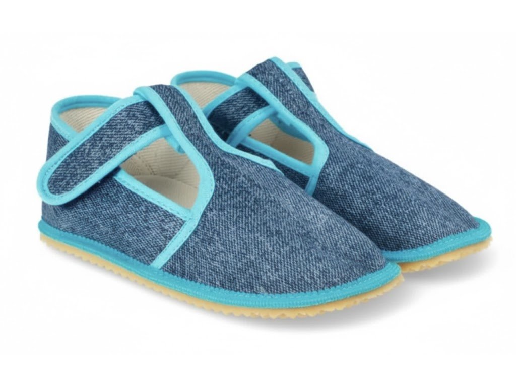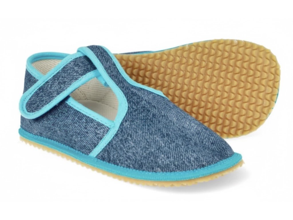 Chlapecké barefoot bačkory Beda BF 060010/W/02 DENIM TURQUOISE (úzký typ)