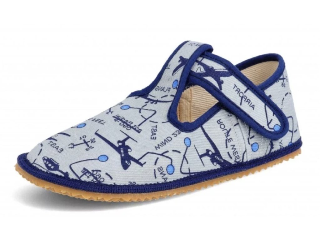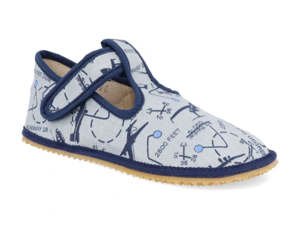 Hledáte kvalitní chlapecké barefoot přezůvky s motivem, který děti nadchne? Beda Grey Aeroplane jsou lehké a prodyšné bačkory s tenkou, maximálně ohebnou podrážkou, nulovým dropem a anatomicky tvarovanou špičkou. Díky zapínání na suchý zip se snadno nazouvají a dobře drží na noze. Užší střih v oblasti kotníků zajišťuje stabilitu při chůzi. Přezůvky jsou navrženy pro normální až širší dětská chodidla a jsou ručně vyráběny v České republice. Ideální volba do školky, školy i na domácí nošení.