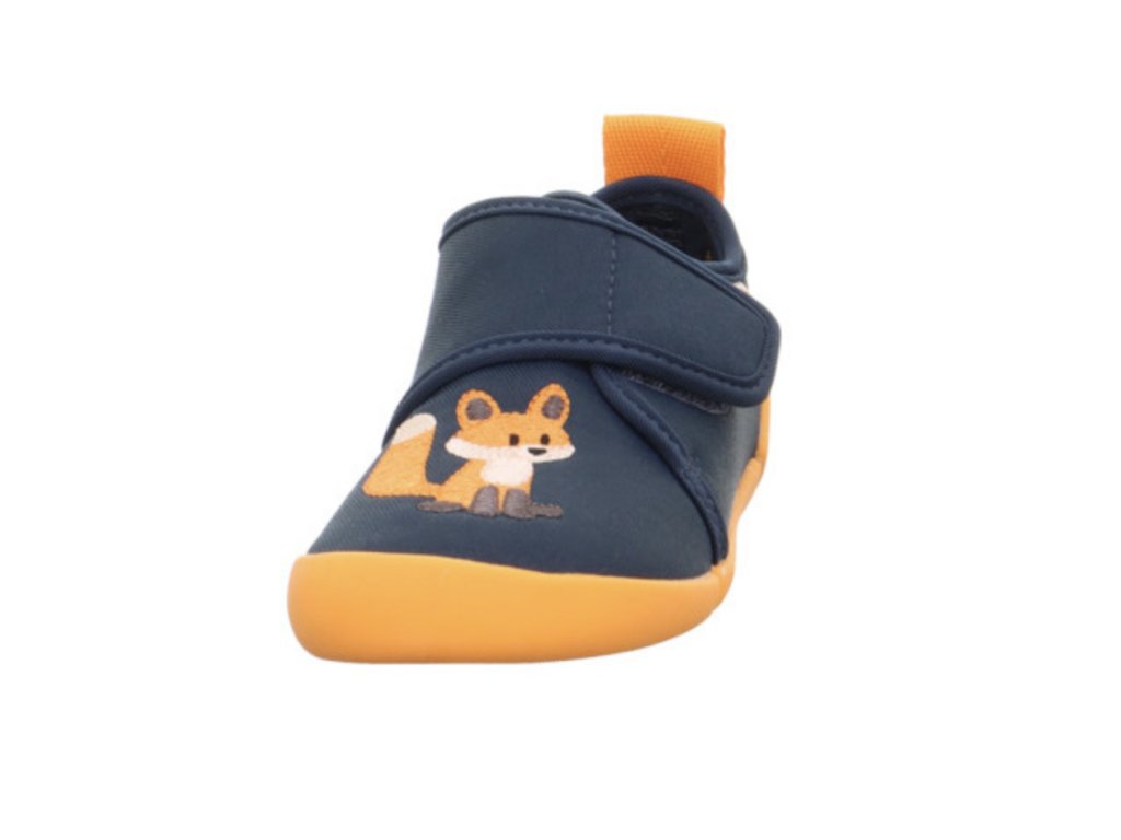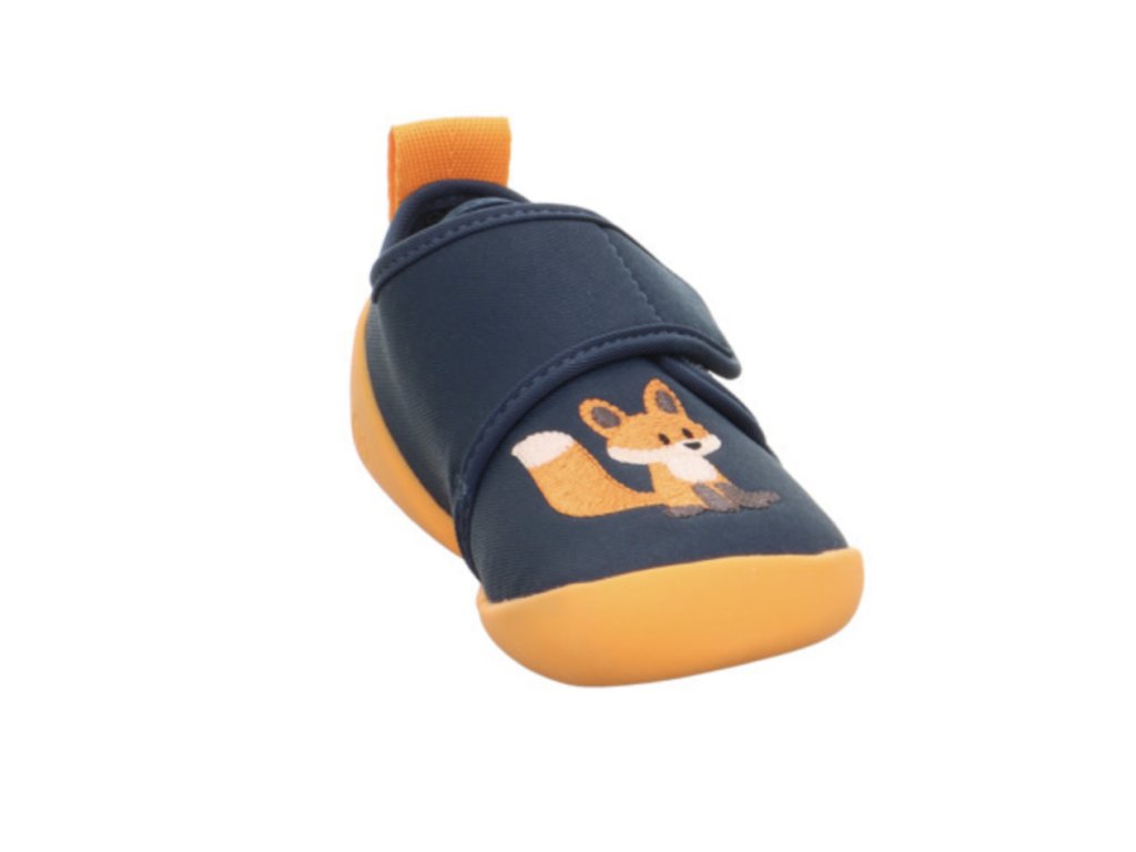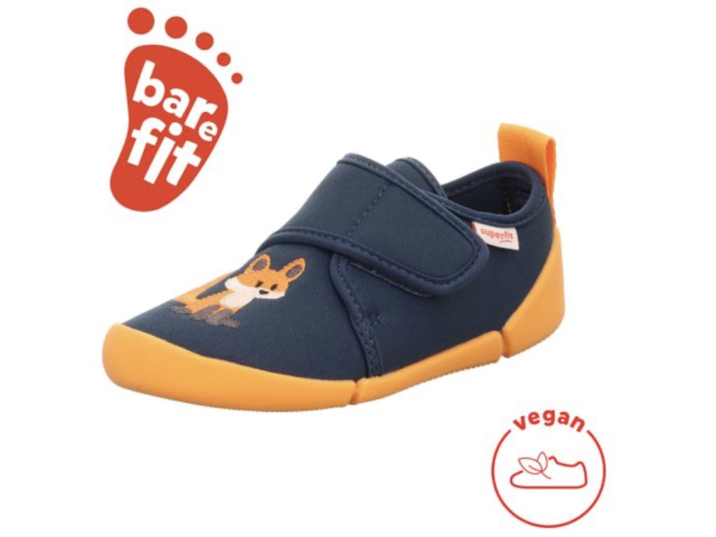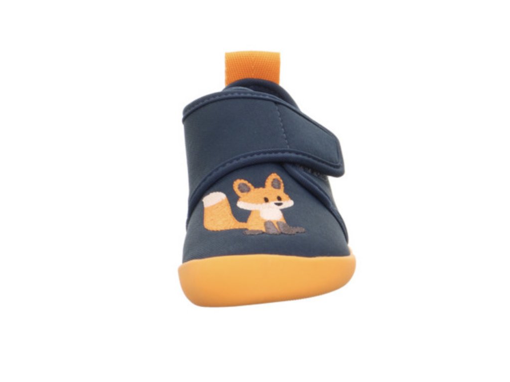 Barefoot botičky Superfit Venti v modro-oranžové barvě s motivem lišky jsou velmi lehké a pohodlné pro každodenní nošení. Díky ohebné, nešpinící podrážce, zapínání na suchý zip a šířce WEITE W jsou ideální do školy i školky, ale využijete je i venku za teplého počasí.