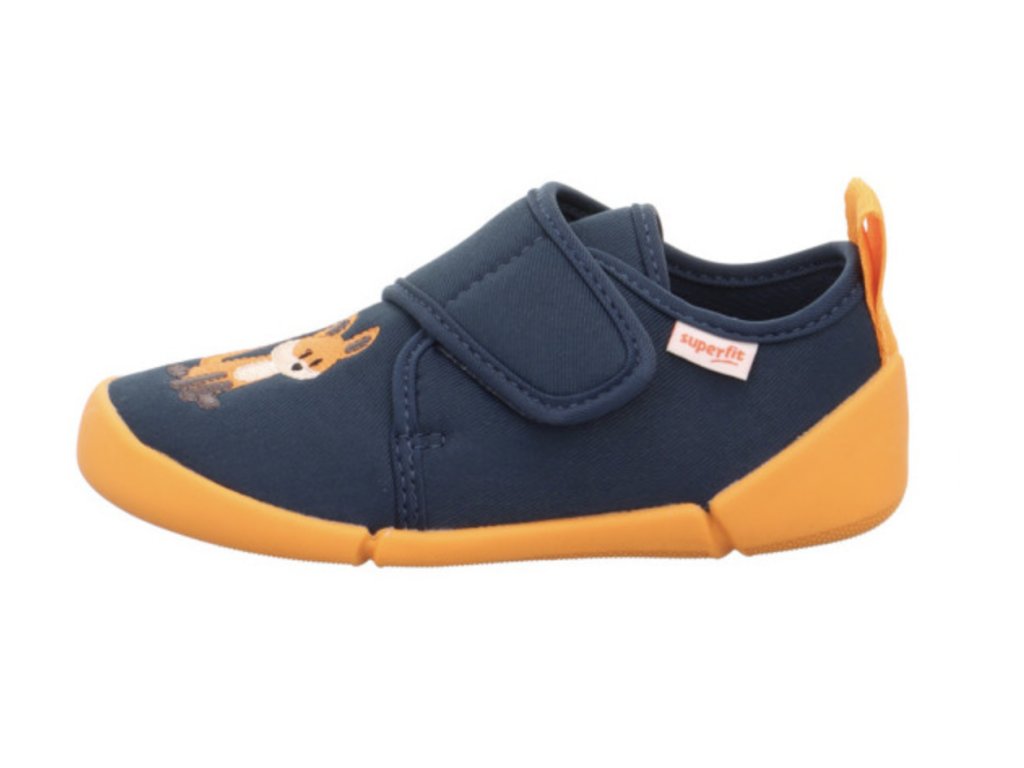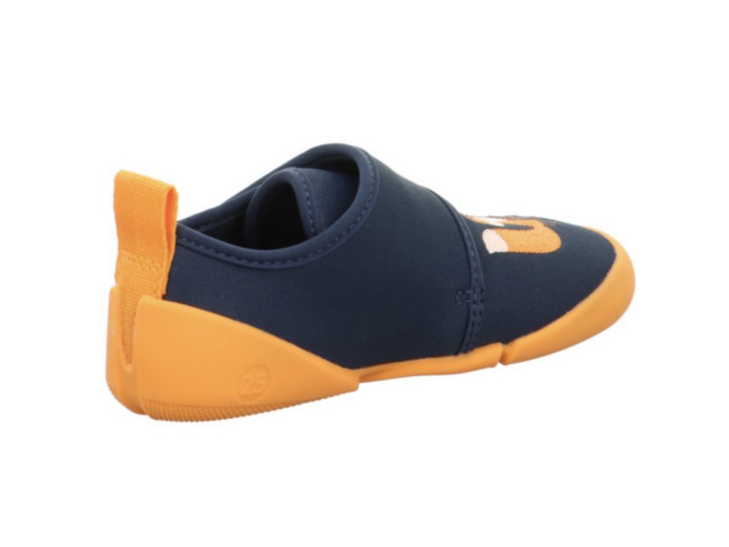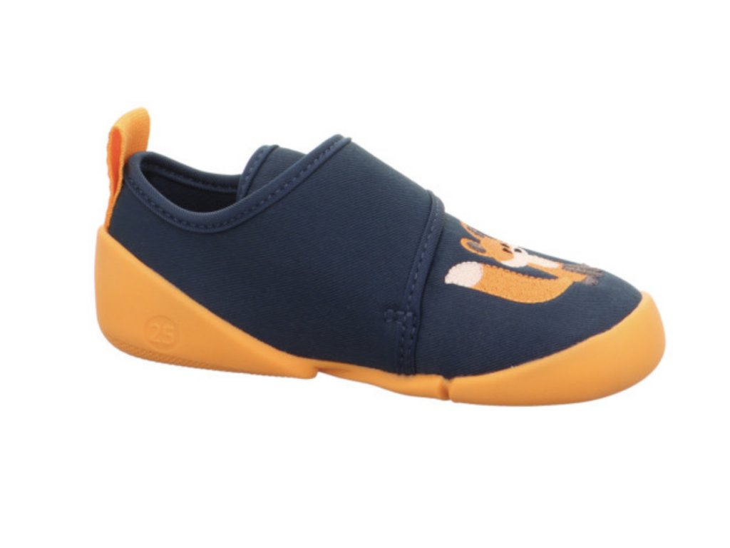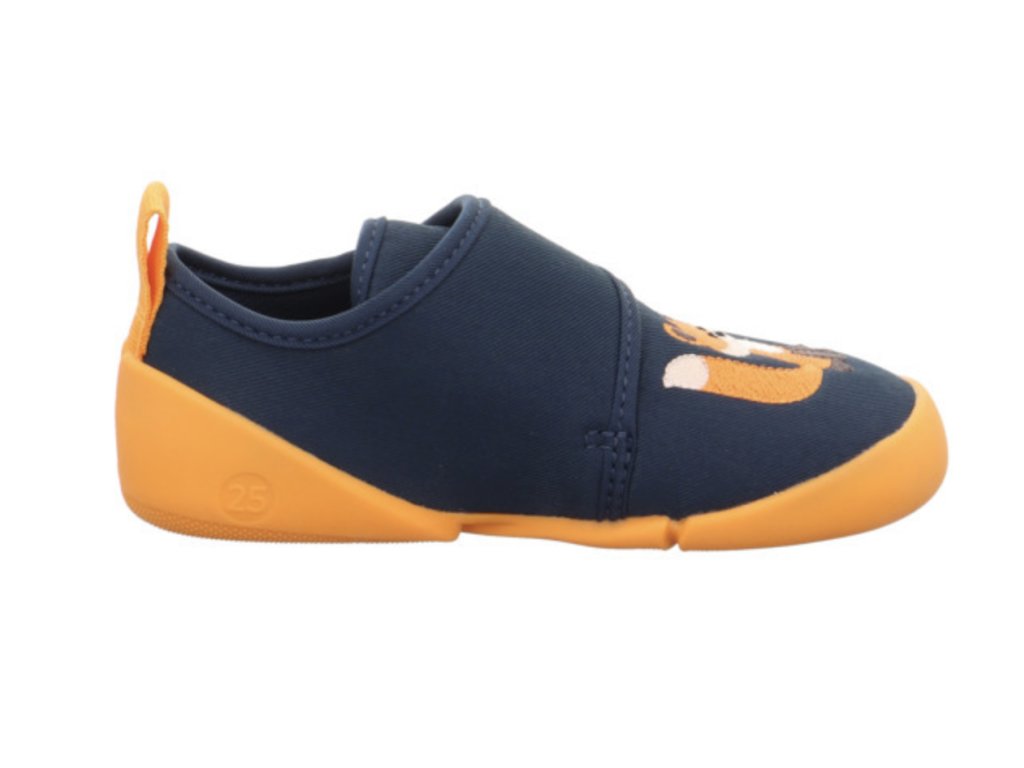 Barefoot botičky Superfit Venti v modro-oranžové barvě s motivem lišky jsou velmi lehké a pohodlné pro každodenní nošení. Díky ohebné, nešpinící podrážce, zapínání na suchý zip a šířce WEITE W jsou ideální do školy i školky, ale využijete je i venku za teplého počasí.