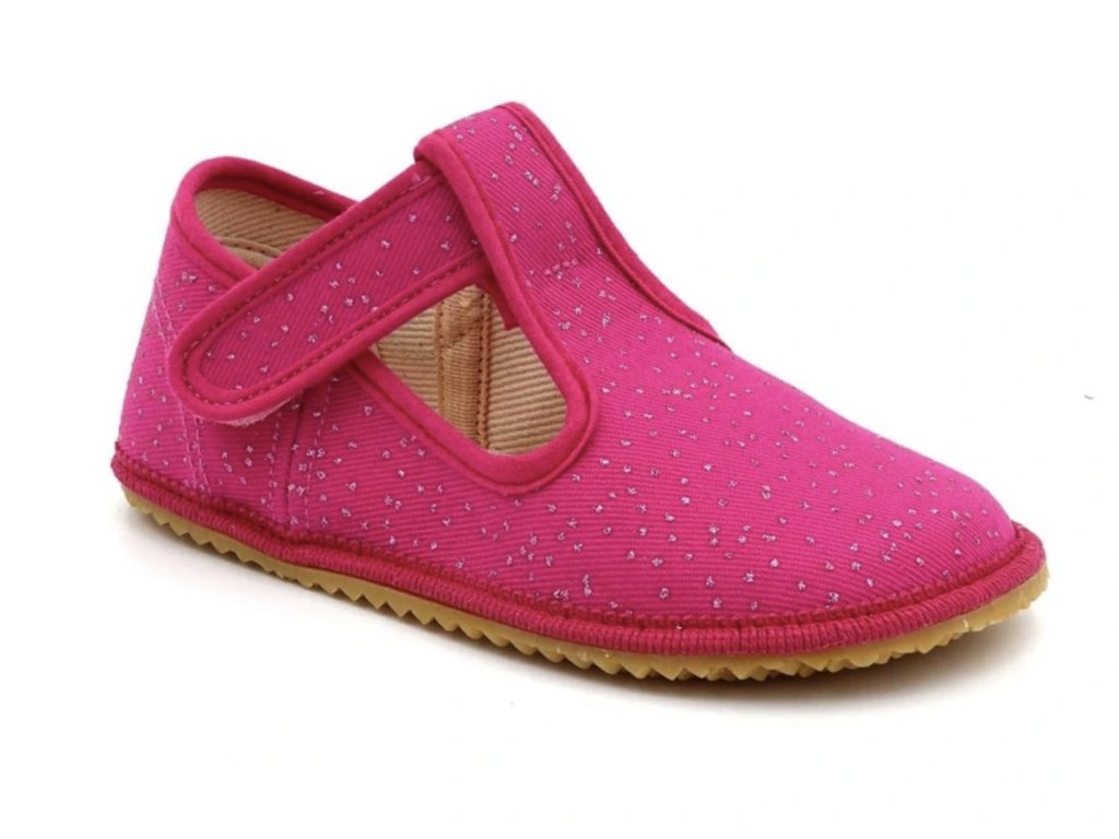 Dívčí barefoot přezůvky Beda Pink Shine BFN 170020/W – ideální volba do školky i domů.