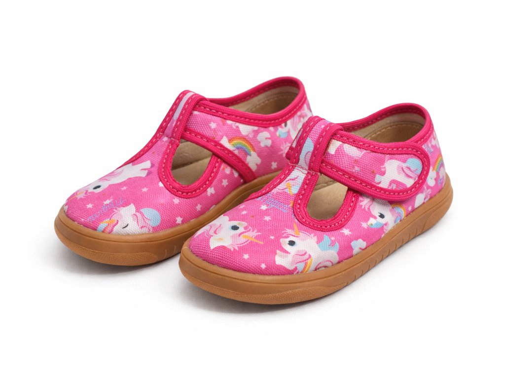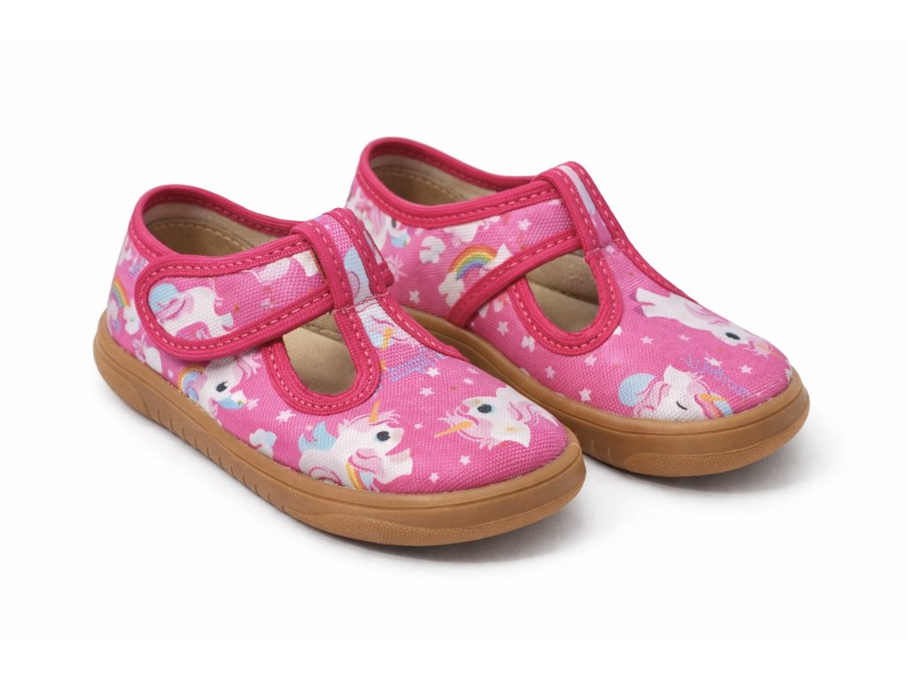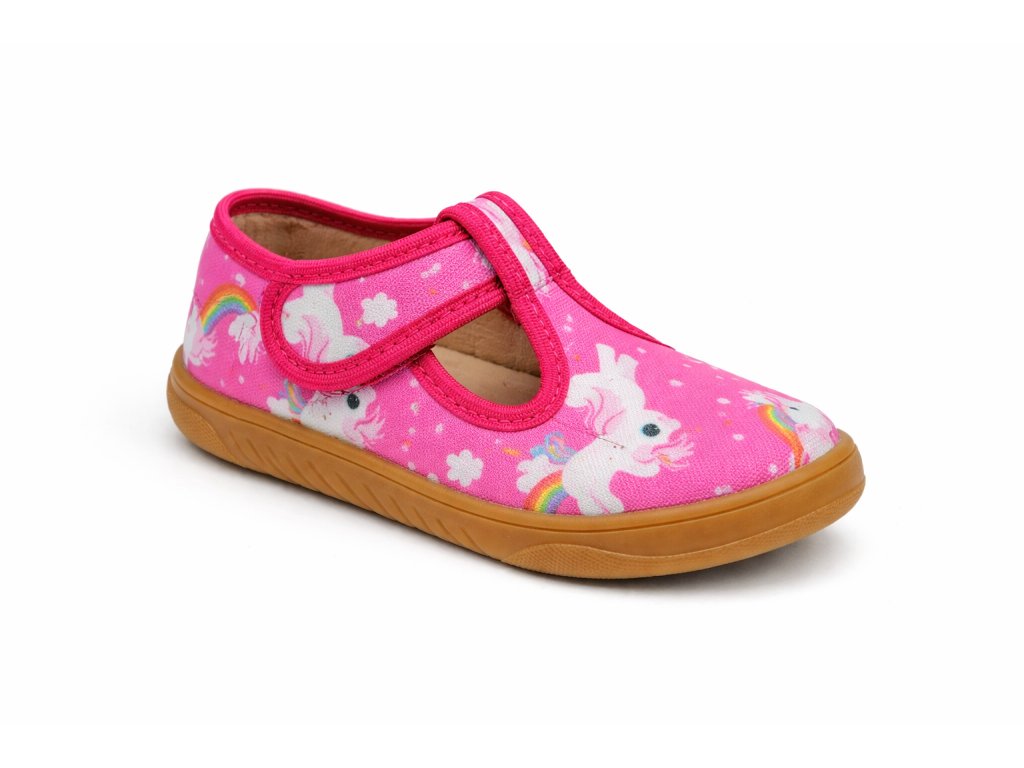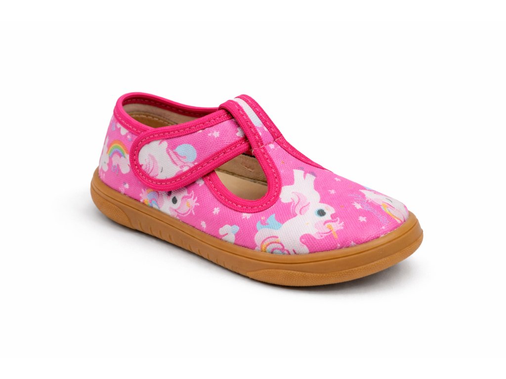 Dívčí barefoot bačkory Milami od srbského výrobce jsou lehké a prodyšné přezůvky s flexibilní podrážkou a prostornou špičkou, které podporují přirozený pohyb dětské nohy. Díky protiskluzové podešvi, která nezanechává šmouhy, a zapínání na suchý zip jsou ideální do školky, školy i na doma.