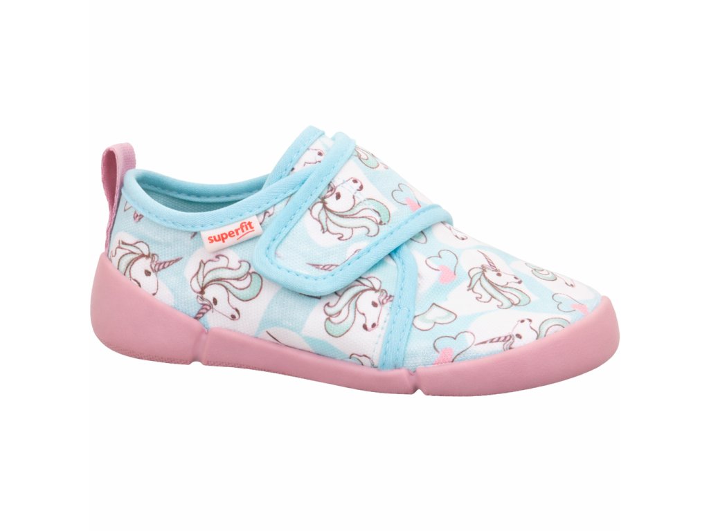 Barefoot botičky Superfit Venti 1-006700-7500 modro-růžové s motivem jednorožců jsou velmi lehké a pohodlné pro každodenní nošení. Díky ohebné, nešpinící podrážce, zapínání na suchý zip a šířce WEITE W jsou ideální do školy i školky, ale využijete je i venku za teplého počasí.