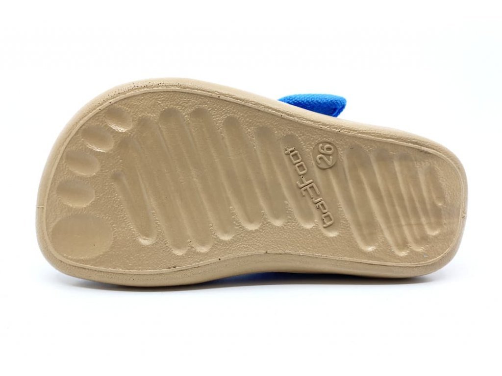 Podrážka: Flexibilní podrážka z termoplastické gumy je odolná, protiskluzová, flexibilní jak podélně, tak příčně. Má nulový sklon mezi patou a palcem, což podporuje zdravý vývoj chodidla.