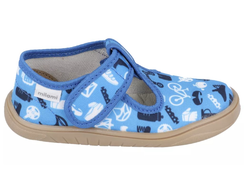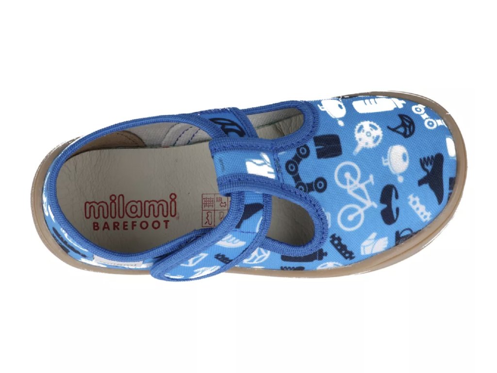 Chlapecké barefoot bačkory Milami od srbského výrobce jsou lehké a prodyšné přezůvky s flexibilní podrážkou a prostornou špičkou, které podporují přirozený pohyb dětské nohy. Díky protiskluzové podešvi, která nezanechává šmouhy, a zapínání na suchý zip jsou ideální do školky, školy i na doma.