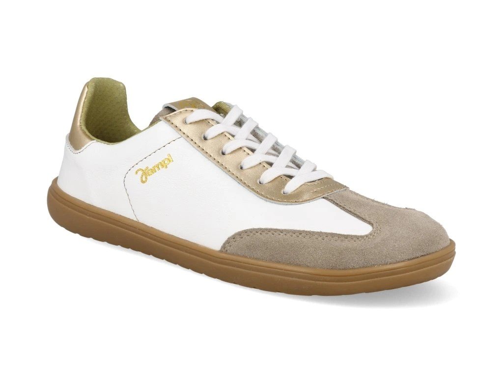 Dámské barefoot tenisky Jonap Jampi Retro bílozlaté – pohodlné kožené boty s flexibilní podrážkou a stylovým designem do města i přírody.