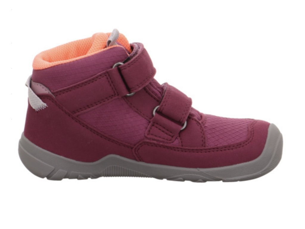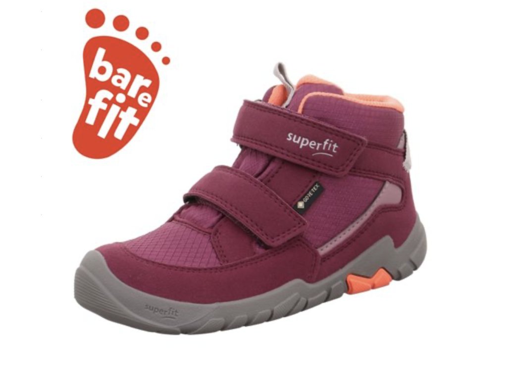 Dívčí podzimní Barefoot obuv Superfit Trace mittel v červené barvě s Gore-Tex membránou a zateplenou stélkou jsou ideální pro podzim i mírnou zimu – udrží nohy v suchu a pohodlí. Měkká zateplená podšívka a flexibilní gumová podešev zajišťují celodenní komfort při chůzi.