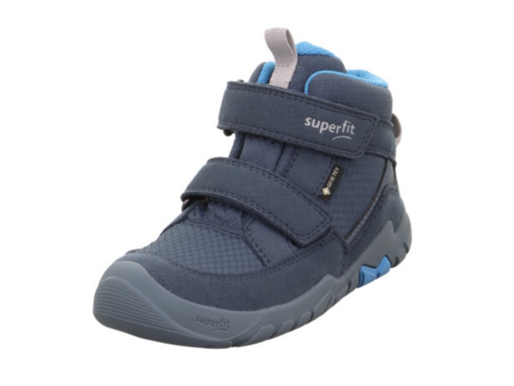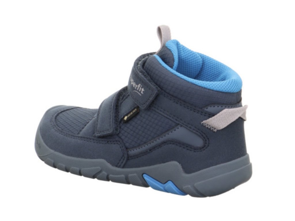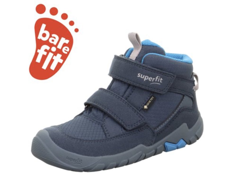 Chlapecká podzimní Barefoot obuv Superfit Trace mittel v modré barvě s Gore-Tex membránou a zateplenou stélkou jsou ideální pro podzim i mírnou zimu – udrží nohy v suchu a pohodlí. Měkká zateplená podšívka a flexibilní gumová podešev zajišťují celodenní komfort při chůzi.