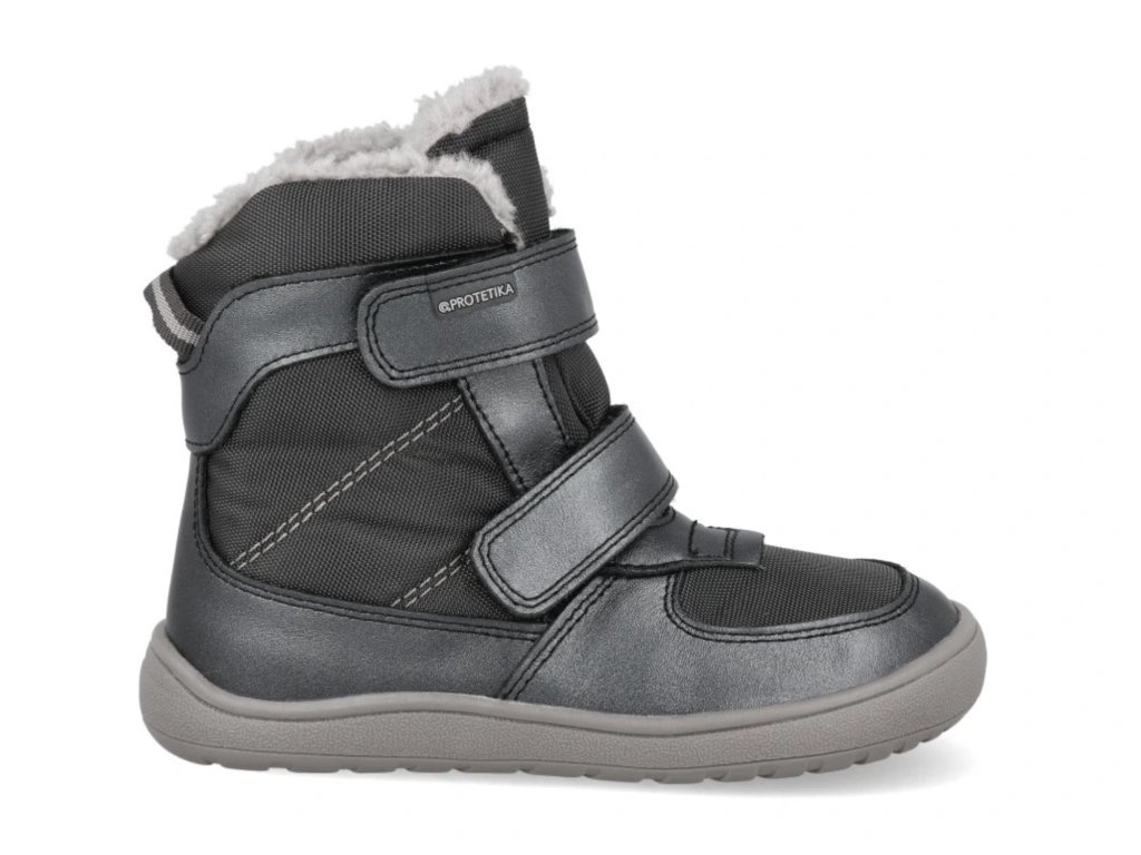 Zimní barefoot boty Protetika Lora grey v šedé barvě jsou stylové a funkční dívčí boty určené do chladného zimního počasí. Vyrobené z kombinace broušené kůže a textilu, doplněné o voděodolnou membránu PROTEX, která spolehlivě chrání dětské nohy před vlhkostí a chladem. Měkký kožíšek udržuje teplo i při delším pobytu venku, zatímco flexibilní gumová podrážka umožňuje přirozený pohyb a jistý krok na každém povrchu.