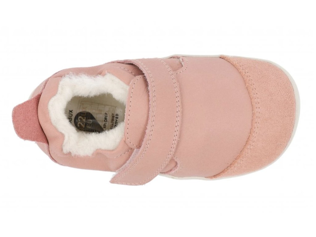 Barefoot zimní capáčky Bobux Marvel Arctic Rose v růžové barvě kombinují lehkost, teplo a přirozený pohyb dětské nohy. Jsou ušité z hladké kůže a odolného veluru, uvnitř zateplené merino kožíškem pro maximální pohodlí. Zapínání na suchý zip usnadňuje obouvání a zajišťuje, že capáčky dobře drží na noze.
