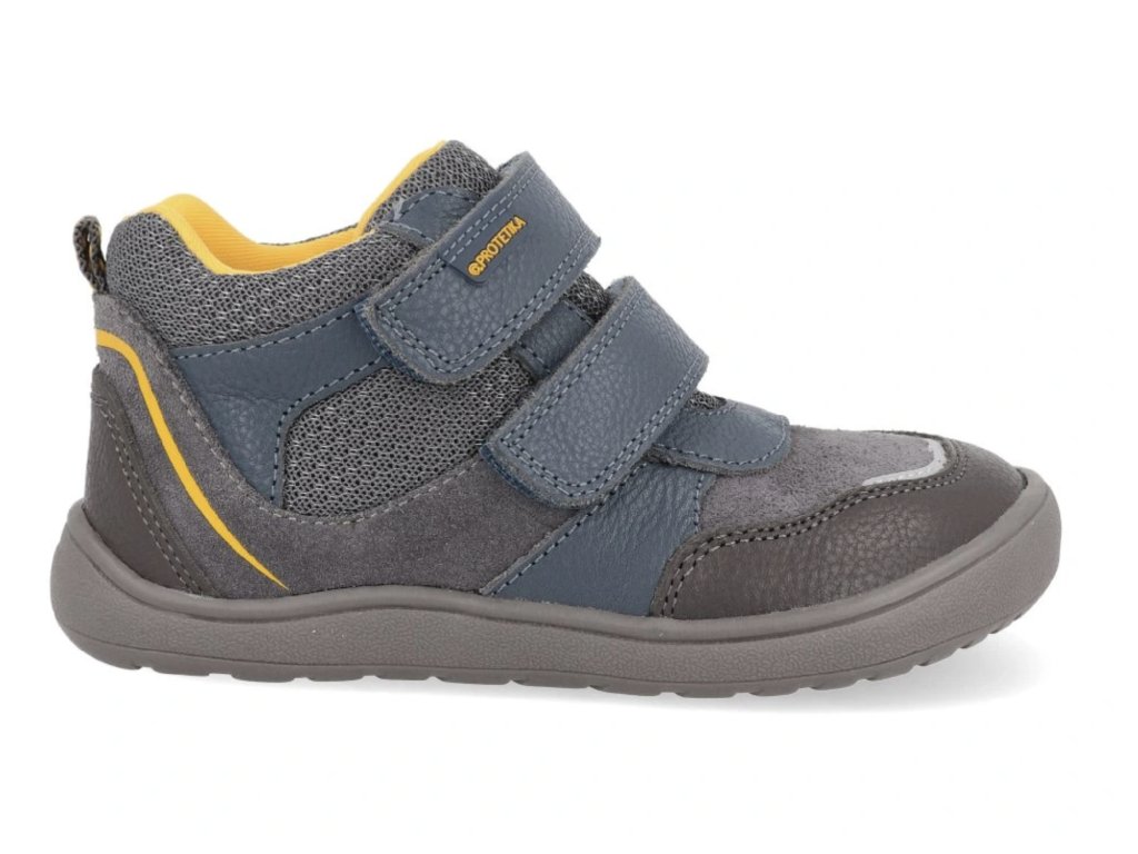 Celoroční kotníkové barefoot boty Protetika BANET Grey s voděodpudivou membránou PRO-tex jsou vhodné pro průměrně širokou nohu. Nabízí pohodlí, flexibilní podrážku a anatomickou špičku. Kožený svršek je odolný, membrána chrání před vlhkostí. Díky zapínání na suchý zip se snadno obouvají a hodí se na každodenní nošení do města i na procházky.
