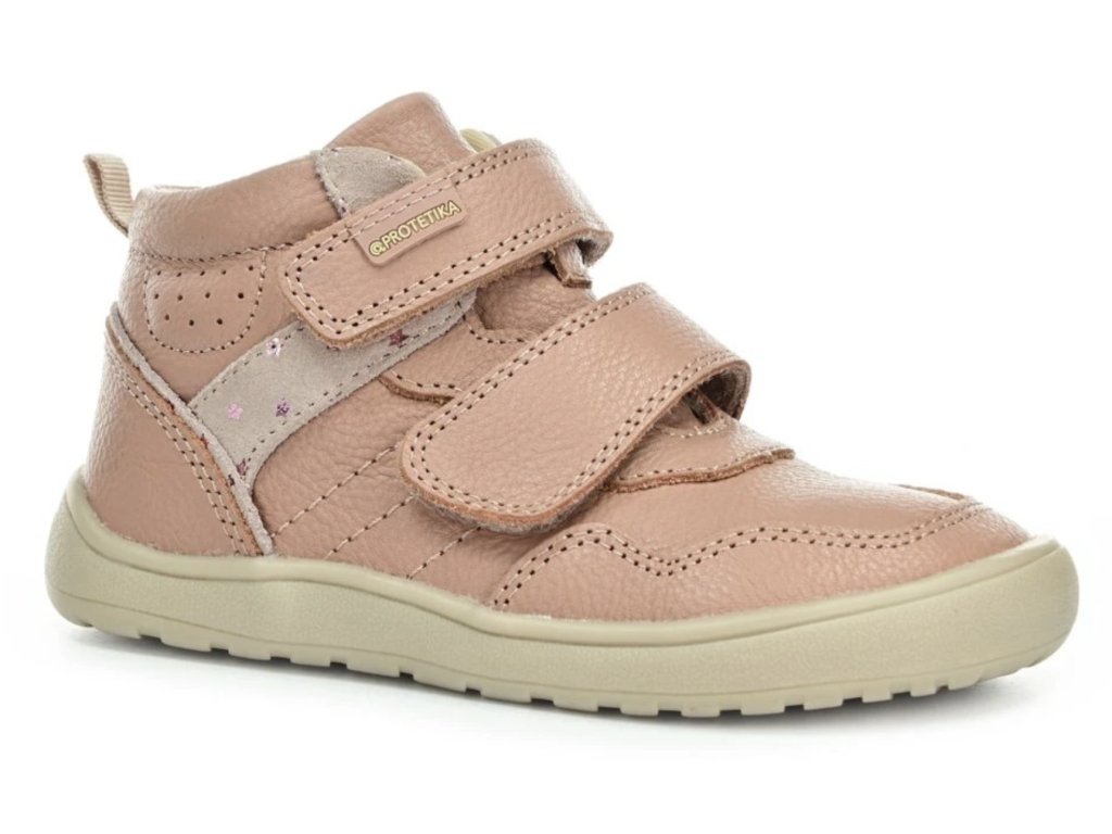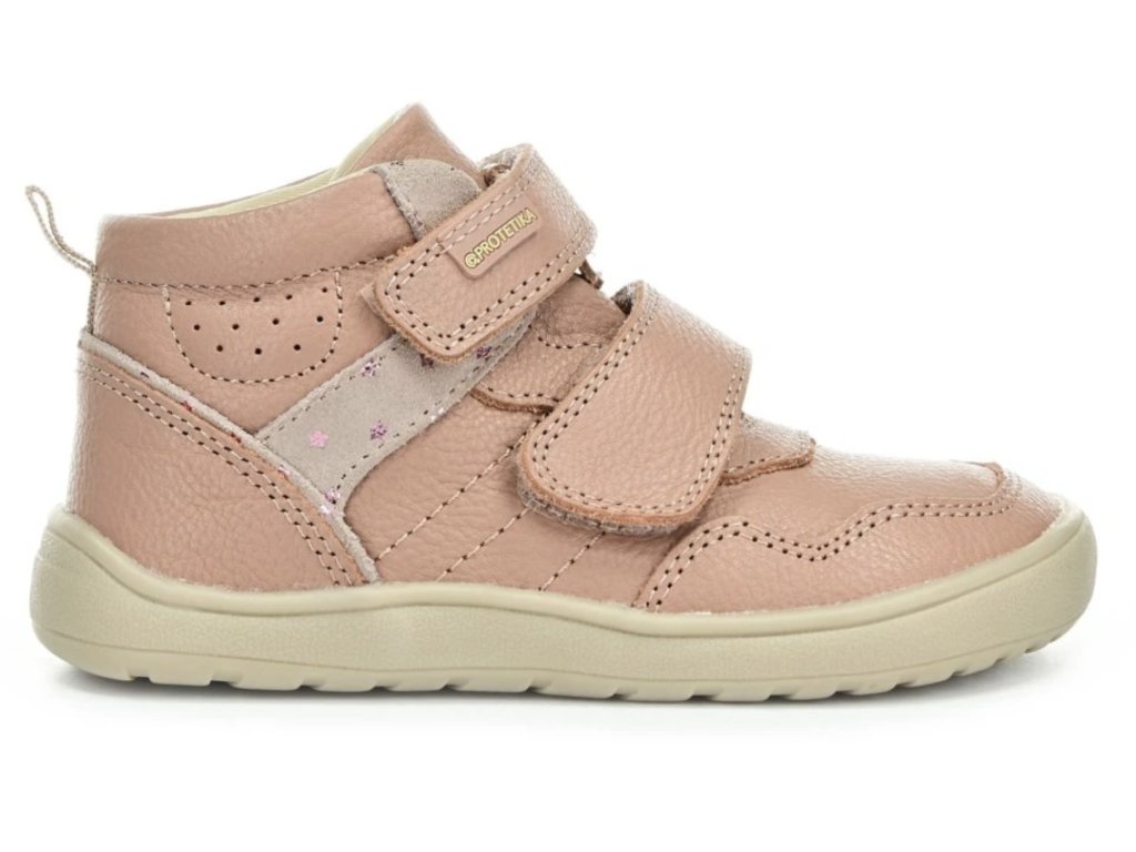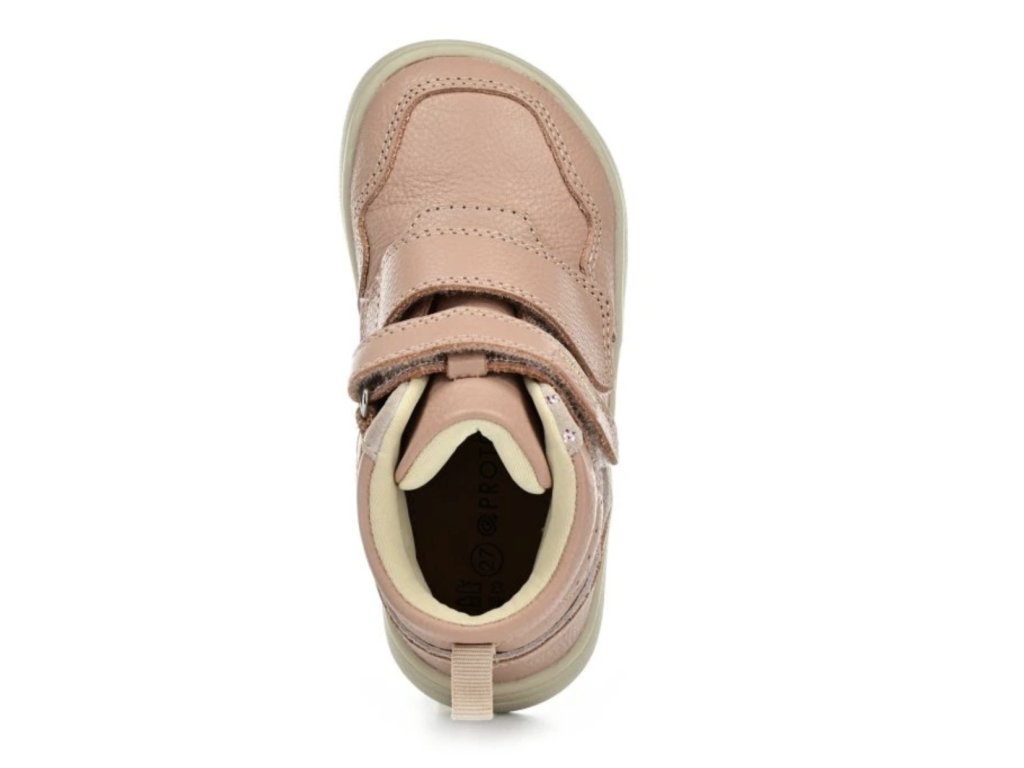 Celoroční kotníkové barefoot boty Protetika Tira Pink pro průměrně širokou nohu poskytují pohodlí, flexibilní podrážku a anatomickou špičku. Odolný kožený svršek chrání před vlhkostí. Díky suchému zipu se snadno obouvají a jsou ideální na každodenní nošení do města i na procházky.