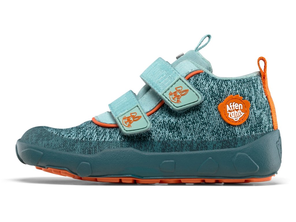 Dětské kotníkové barefoot boty Affenzahn Low Boot Knit Happy Bunny s membránou AffenTex – lehké, flexibilní a voděodolné boty pro celoroční použití. Díky ergonomickému tvaru, dostatku prostoru pro prsty a tenké, zcela ohebné podrážce podporují přirozený a zdravý vývoj dětské nohy. Nepromokavá a prodyšná membrána AffenTex udrží nohy v suchu a teple za každého počasí. Reflexní prvky po celém obvodu boty zvyšují bezpečnost. Snadné zapínání na suchý zip umožňuje rychlé obutí.