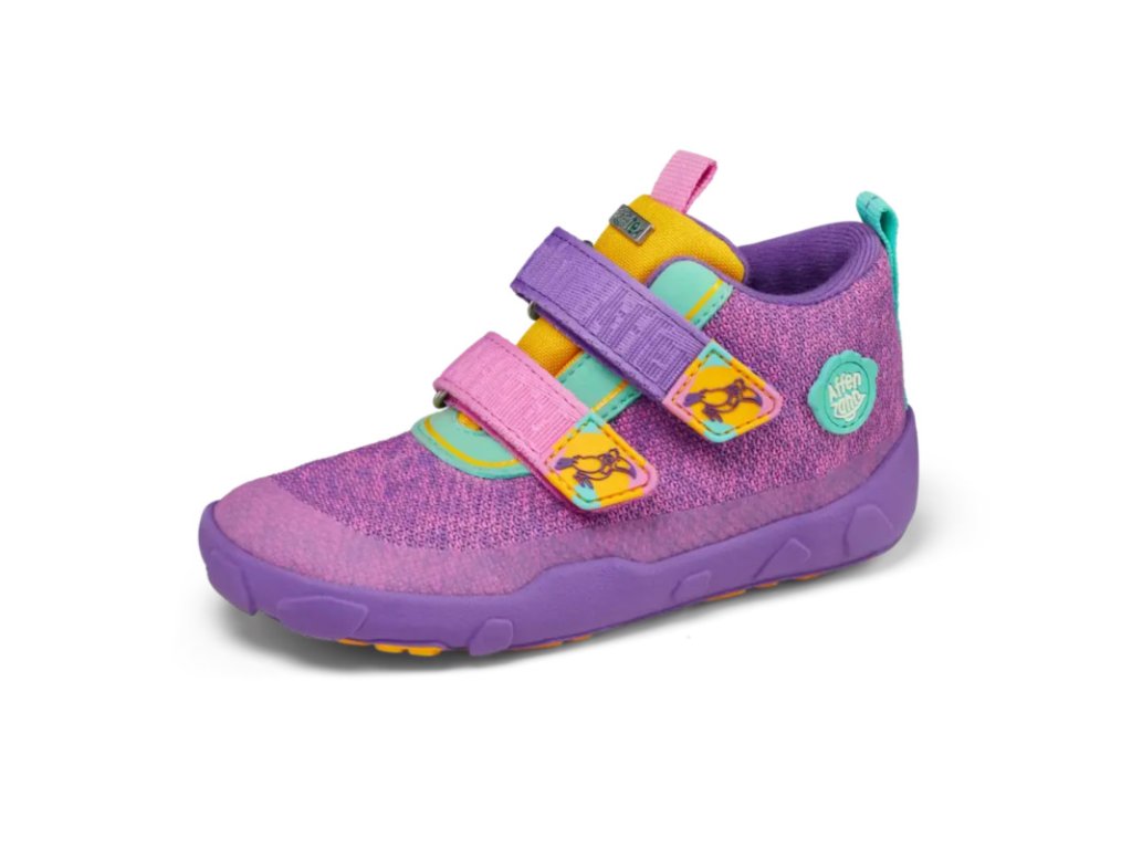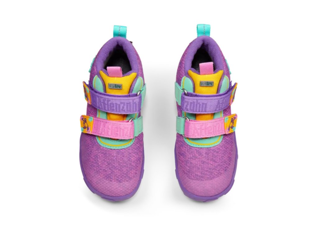 Dětské kotníkové barefoot boty Affenzahn Low Boot Knit Happy Creative Tucans membránou AffenTex – lehké, flexibilní a voděodolné boty pro celoroční použití. Díky ergonomickému tvaru, dostatku prostoru pro prsty a tenké, zcela ohebné podrážce podporují přirozený a zdravý vývoj dětské nohy. Nepromokavá a prodyšná membrána AffenTex udrží nohy v suchu a teple za každého počasí. Reflexní prvky po celém obvodu boty zvyšují bezpečnost. Snadné zapínání na suchý zip umožňuje rychlé obutí.
