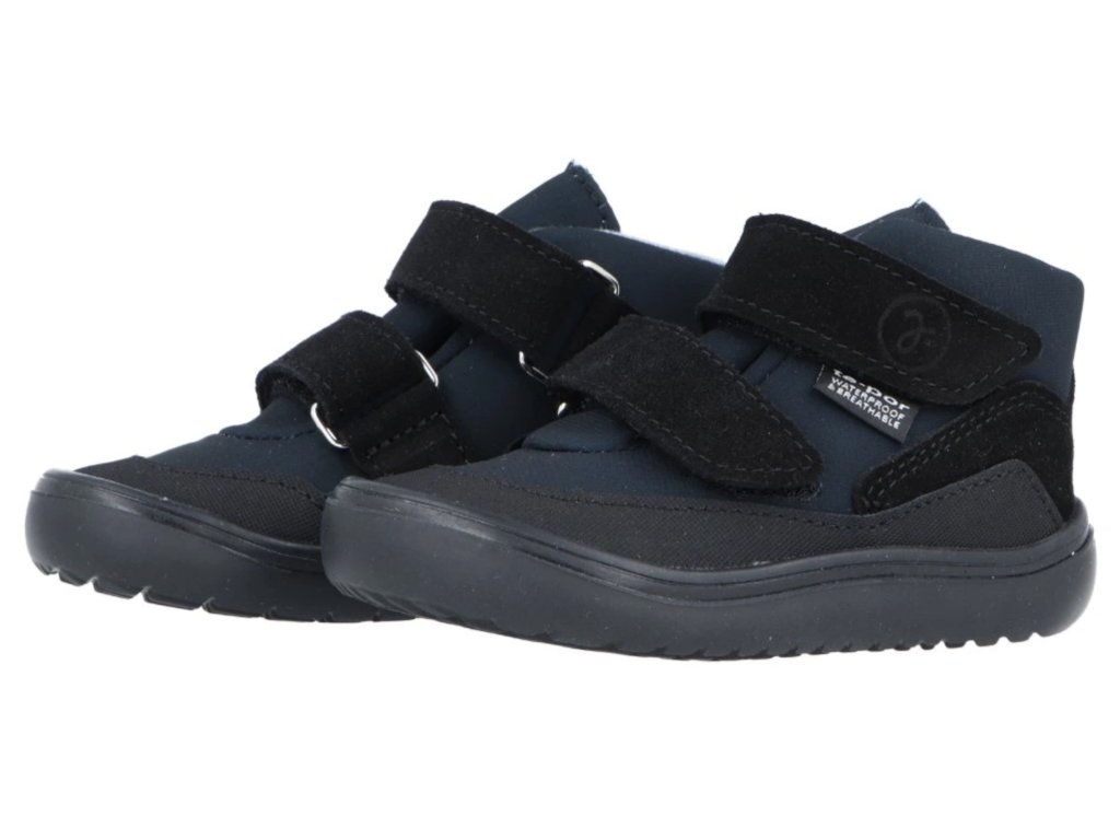 Boty Jonap Look černá jsou barefoot kotníkové boty z kvalitní kůže a softshellu s membránou Tepor, vhodné pro jaro, podzim i mírnou zimu. Vyjímatelná stélka z paměťové pěny a flexibilní podrážka zajistí dětem maximální pohodlí. Obuv je určena pro průměrnou nohu se středním až vyšším nártem a dobře se utáhne i na úzký kotník.