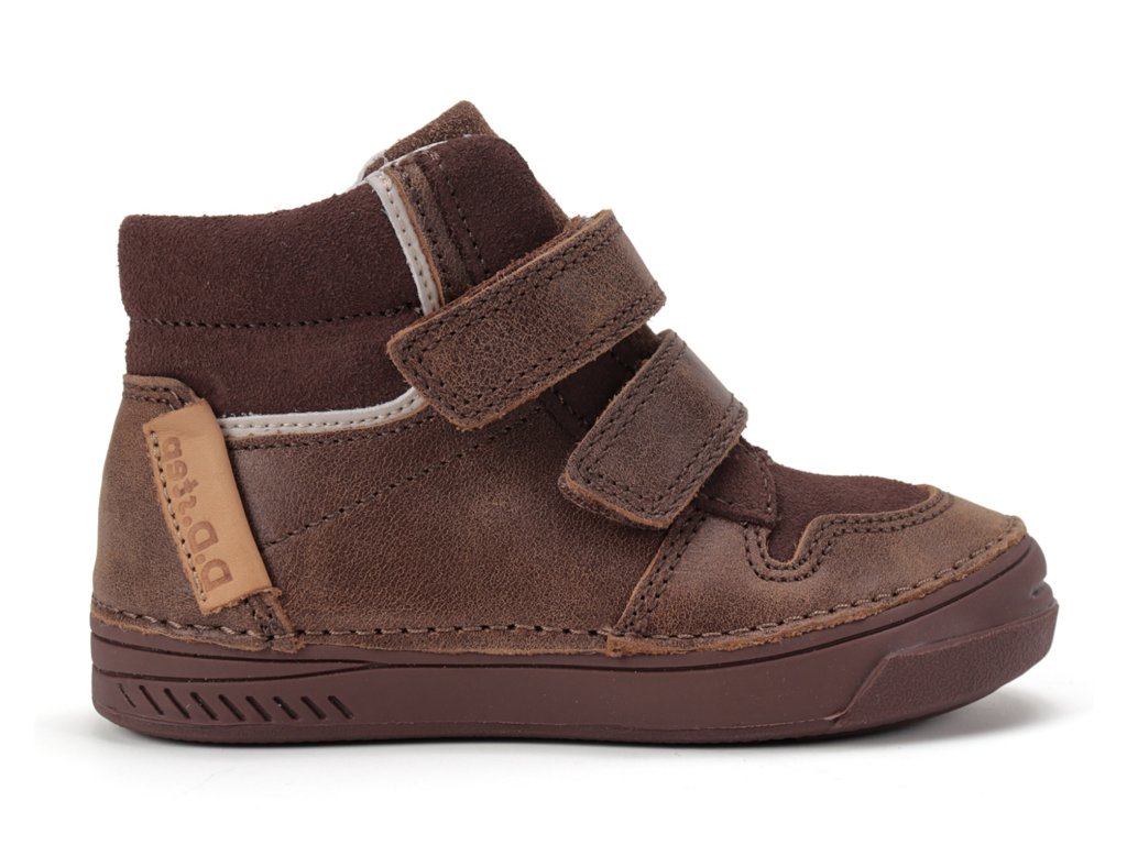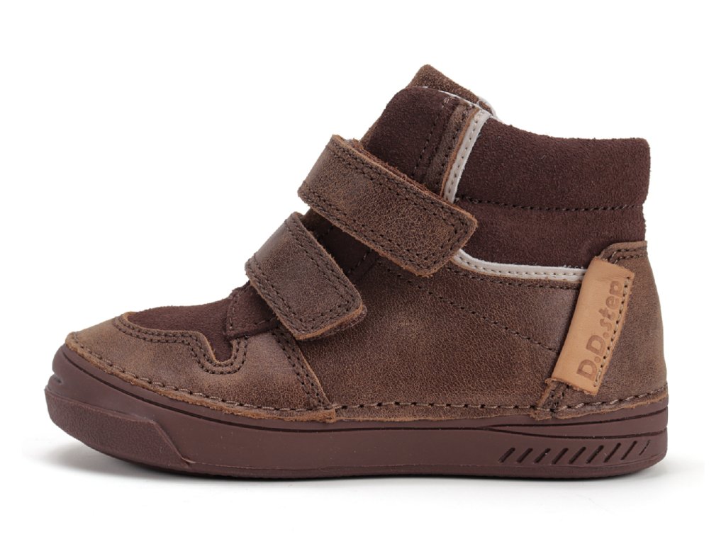 Krásná stylová chlapecká obuv D.D.Step A040-52560 v hnědém odstínu. Boty jsou lehké, ohebné a měkké, s pevným opatkem pro stabilitu. Vhodné na normální i širší nohy a vyšší nárt, zajišťují pohodlí při každém kroku.