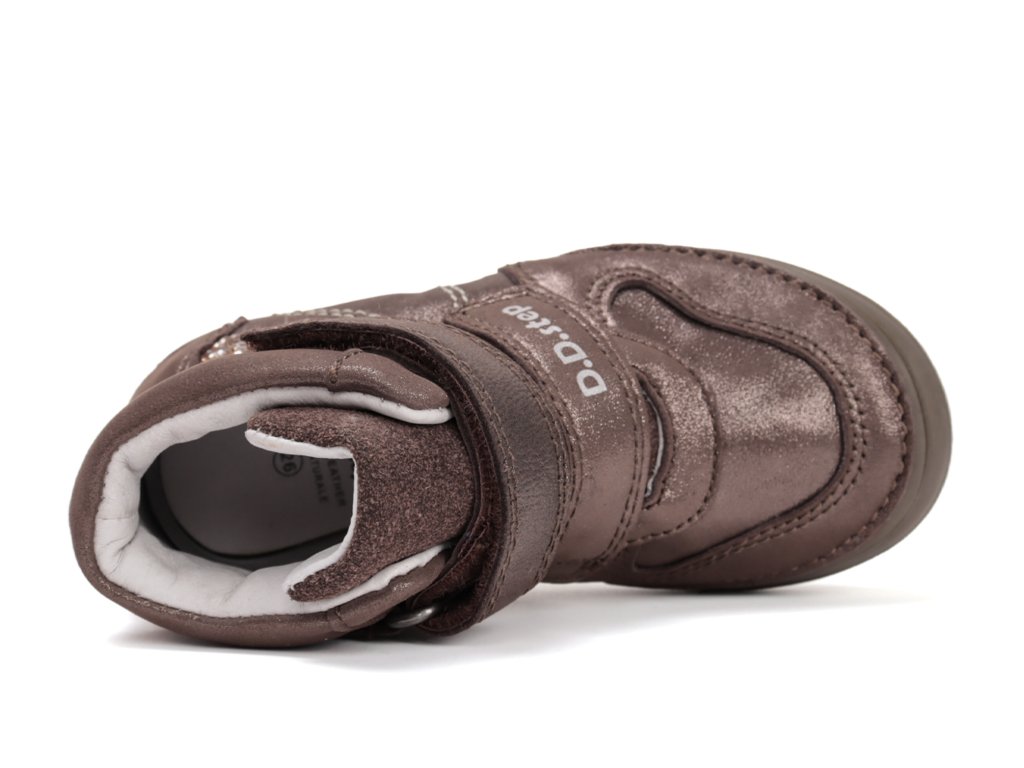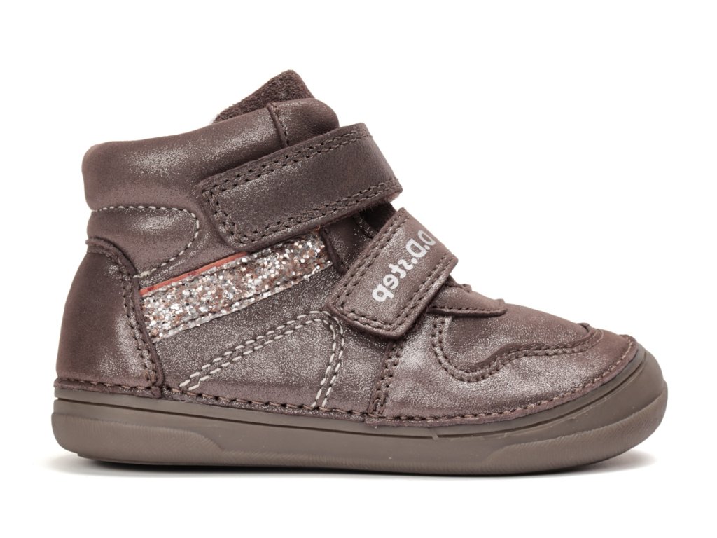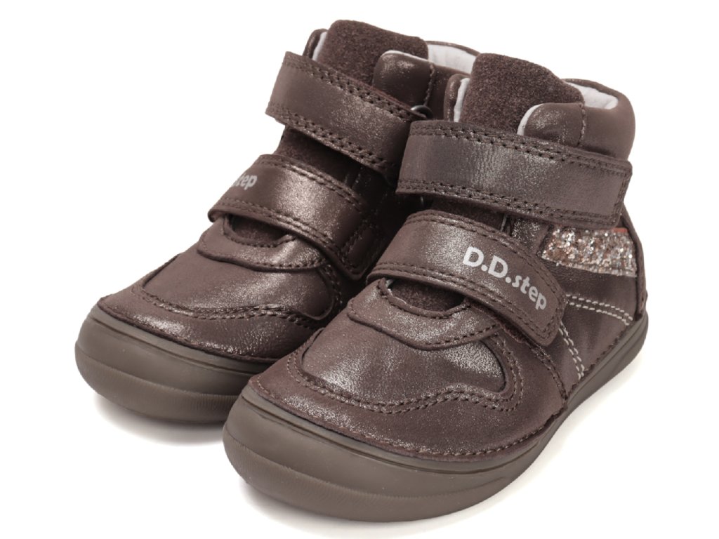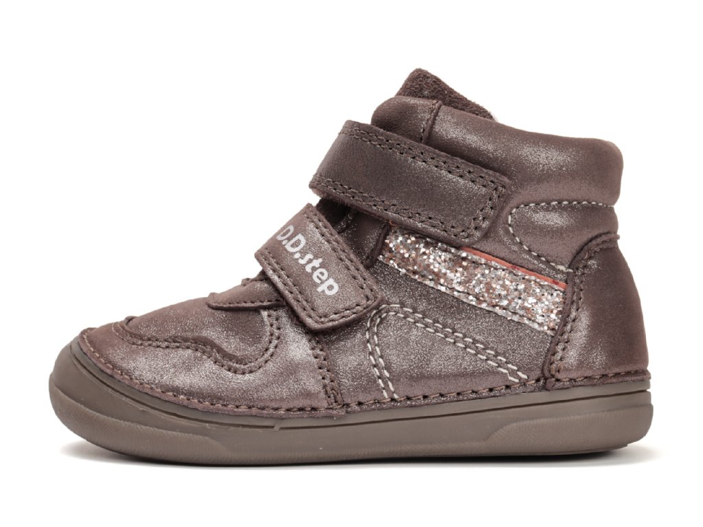 Dívčí celoroční boty D.D.Step A078-52162C v bronzové barvě zaujmou svým elegantním vzhledem a kvalitním zpracováním. Jsou vyrobené z měkké kůže, která se přizpůsobí dětské noze a poskytne maximální pohodlí po celý den. Díky suchým zipům se snadno obouvají a skvěle padnou i dětem s vyšším nártem.