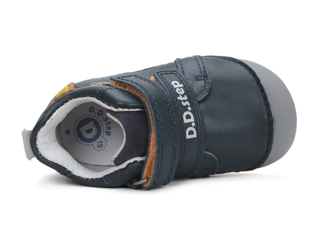 Celoroční obuv D.D.step S015 je kožená obuv, která spojuje vlastnosti barefoot a klasického stylu. Má širší přední část, dostatek prostoru pro prsty, ohebnou podrážku a pevný opatek pro stabilitu nohy a kotníku. Obuv se zapíná na dva suché zipy, které umožňují pohodlné a bezpečné upevnění na noze. Je vybavena tenkou gumovou podrážkou, koženým vnitřkem, stélkou i svrchní částí. Tyto boty jsou ideální pro normální i širší nohy a také pro vyšší nárt.