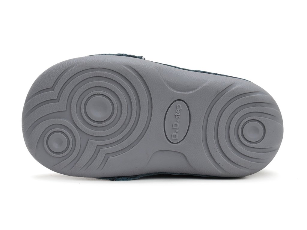 - Opatek a podešev: zpevněný opatek podporuje správné držení nohy a zdravý vývoj chodidla. Lehká, ohebná podešev z přírodní pryže poskytuje neklouzavý povrch a podporuje přirozený pohyb. Ochrana špičky: zvýšený gumový okop chrání botu před poškozením a dětskou nohu při pohybu.