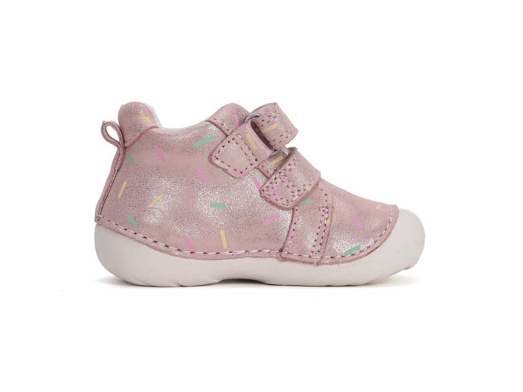 Vhodnost: Díky prostorné špičce, zpevněnému opatku a flexibilní konstrukci je obuv vhodná i pro začínající chodce, podporuje zdravý vývoj dětské nohy. Tento typ je vhodný pro normální i širší nohy, ale také pro vyšší nárt.