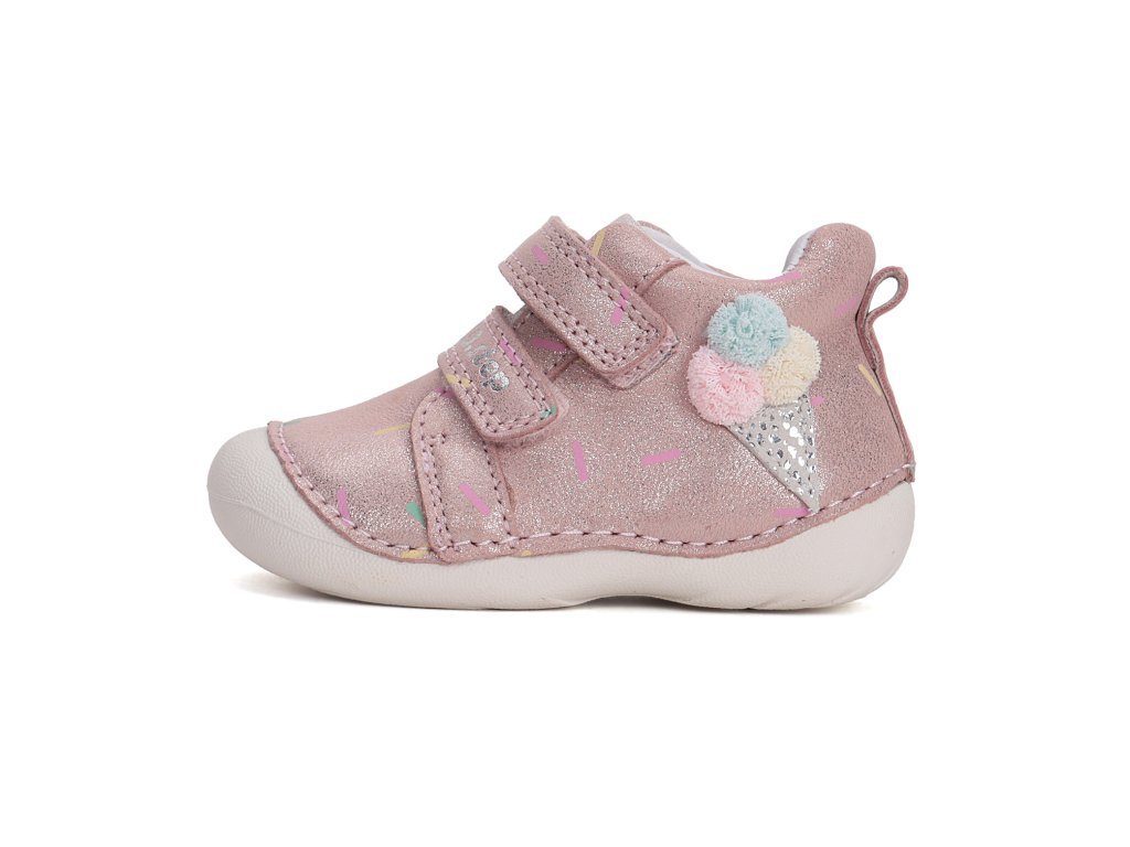 - Vhodnost: Díky prostorné špičce, zpevněnému opatku a flexibilní konstrukci je obuv vhodná i pro začínající chodce, podporuje zdravý vývoj dětské nohy. Tento typ je vhodný pro normální i širší nohy, ale také pro vyšší nárt.