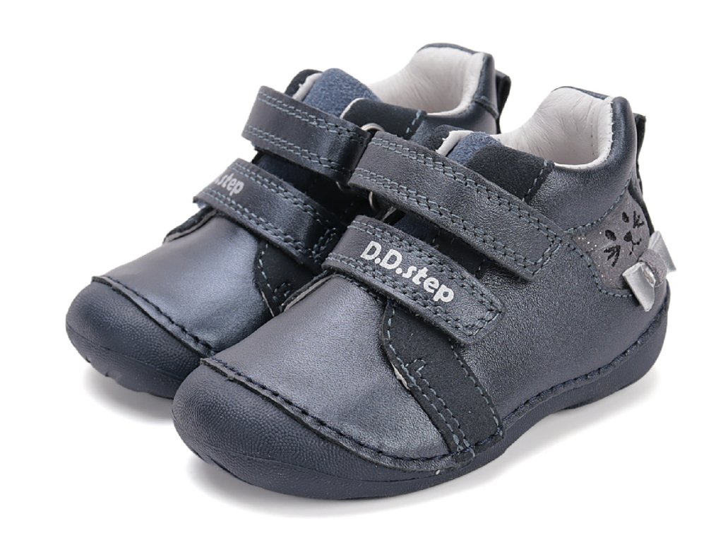 Celoroční obuv D.D.step S015 je kožená obuv, která spojuje vlastnosti barefoot a klasického stylu. Má širší přední část, dostatek prostoru pro prsty, ohebnou podrážku a pevný opatek pro stabilitu nohy a kotníku. Obuv se zapíná na dva suché zipy, které umožňují pohodlné a bezpečné upevnění na noze. Je vybavena tenkou gumovou podrážkou, koženým vnitřkem, stélkou i svrchní částí. Tyto boty jsou ideální pro normální i širší nohy a také pro vyšší nárt.