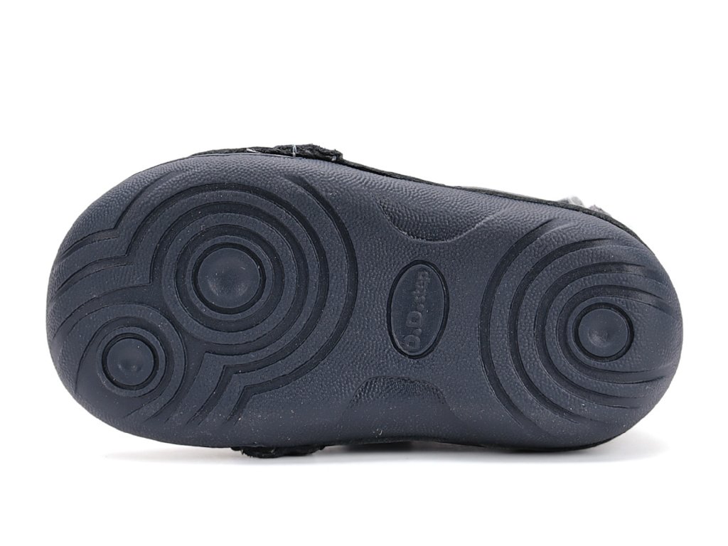 - Opatek a podešev: zpevněný opatek podporuje správné držení nohy a zdravý vývoj chodidla. Lehká, ohebná podešev z přírodní pryže poskytuje neklouzavý povrch a podporuje přirozený pohyb. Ochrana špičky: zvýšený gumový okop chrání botu před poškozením a dětskou nohu při pohybu.