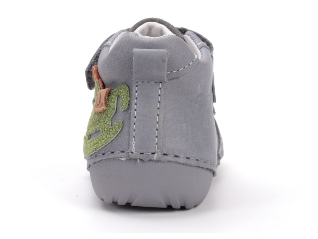 - Opatek a podešev: zpevněný opatek podporuje správné držení nohy a zdravý vývoj chodidla. Lehká, ohebná podešev z přírodní pryže poskytuje neklouzavý povrch a podporuje přirozený pohyb. Ochrana špičky: zvýšený gumový okop chrání botu před poškozením a dětskou nohu při pohybu.
