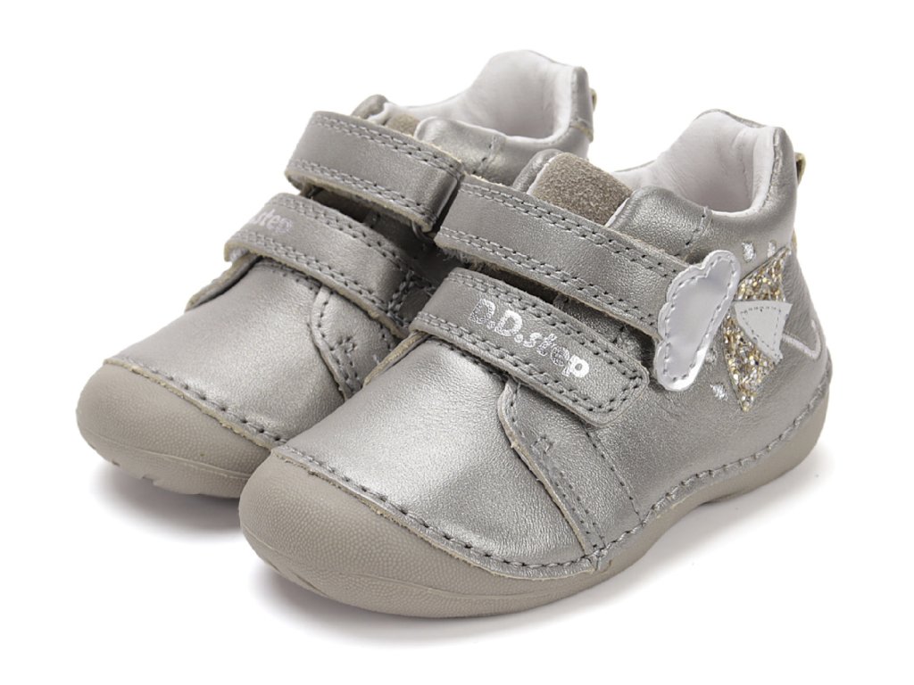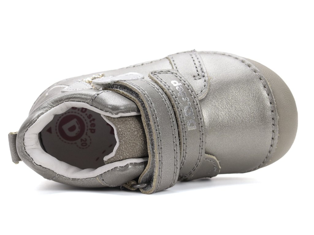 Celoroční obuv D.D.step S015 je kožená obuv, která spojuje vlastnosti barefoot a klasického stylu. Má širší přední část, dostatek prostoru pro prsty, ohebnou podrážku a pevný opatek pro stabilitu nohy a kotníku. Obuv se zapíná na dva suché zipy, které umožňují pohodlné a bezpečné upevnění na noze. Je vybavena tenkou gumovou podrážkou, koženým vnitřkem, stélkou i svrchní částí. Tyto boty jsou ideální pro normální i širší nohy a také pro vyšší nárt.