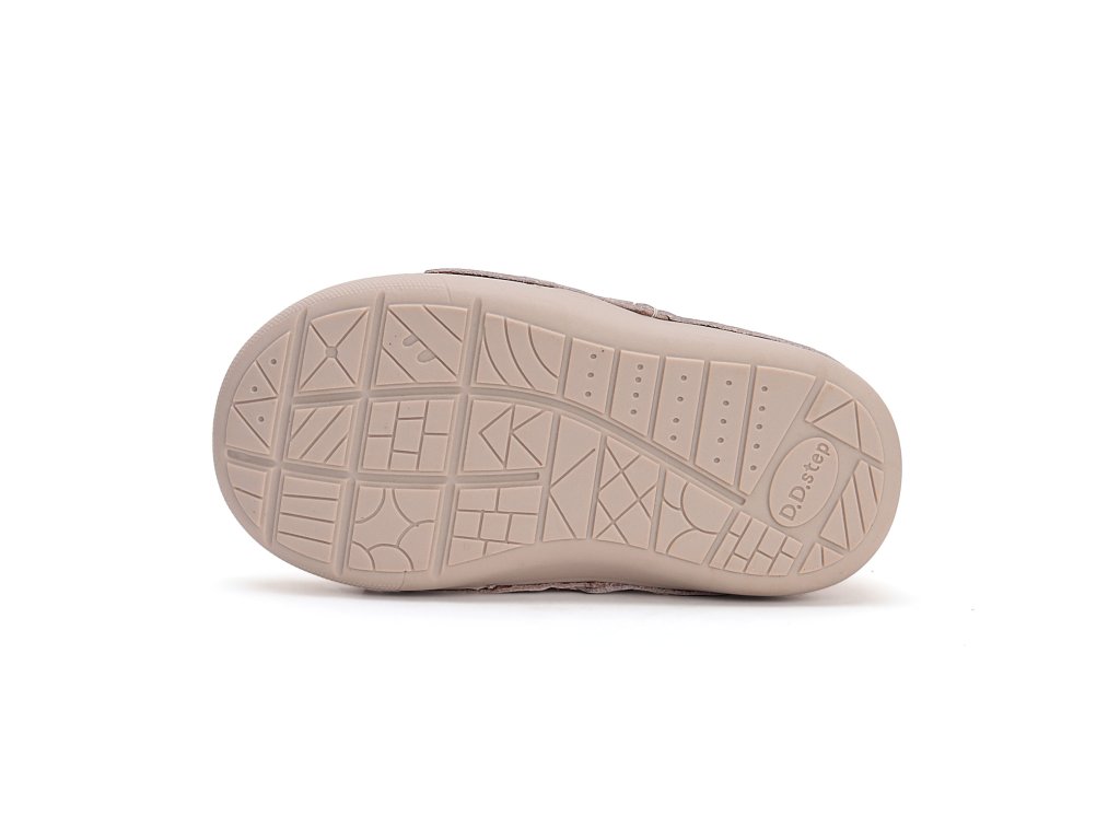 Celoroční obuv D.D.step S066 je kompromisní kožená obuv, která spojuje vlastnosti barefoot a klasického stylu. Má širší přední část, dostatek prostoru pro prsty, ohebnou podrážku a pevný opatek pro stabilitu nohy a kotníku. Obuv se zapíná na dva suché zipy, které umožňují pohodlné a bezpečné upevnění na noze. Je vybavena tenkou gumovou podrážkou, koženým vnitřkem, stélkou i svrchní částí. Tyto boty jsou ideální pro normální i širší nohy a také pro vyšší nárt.