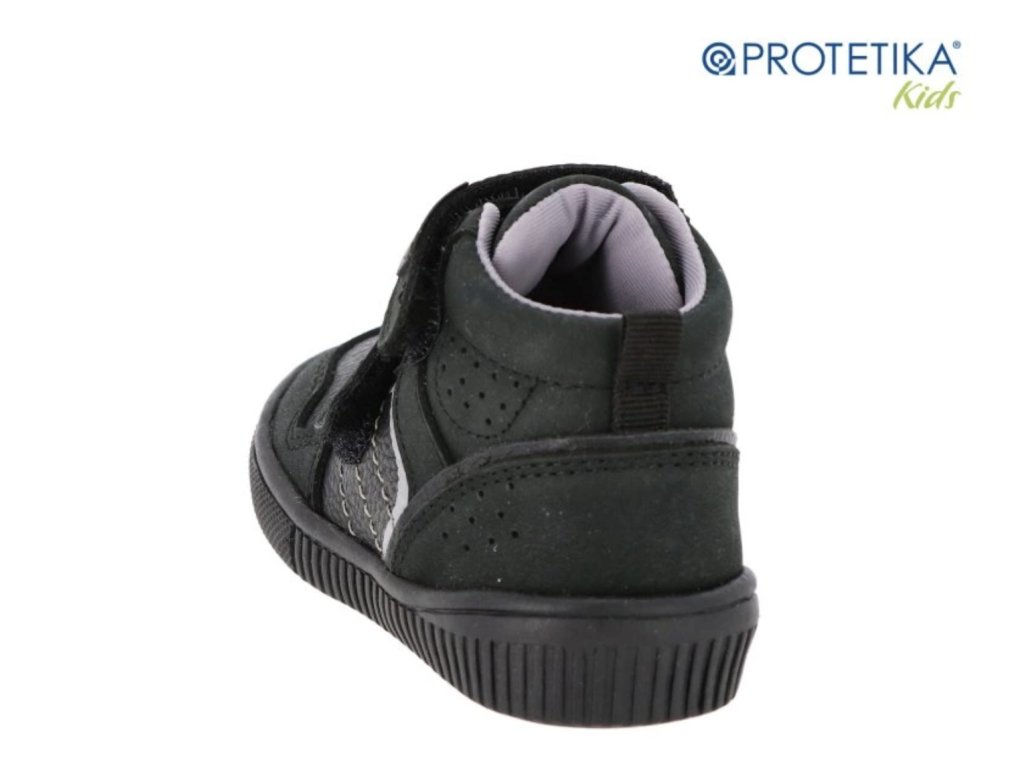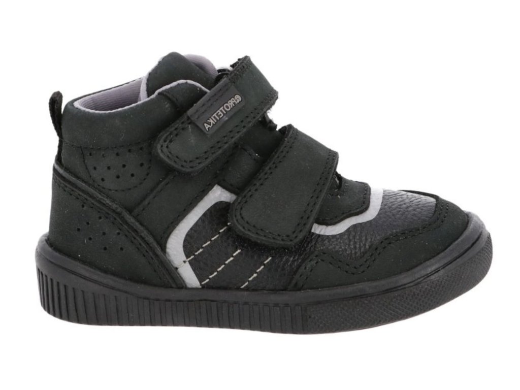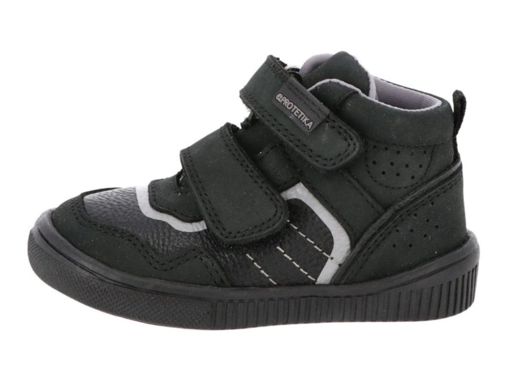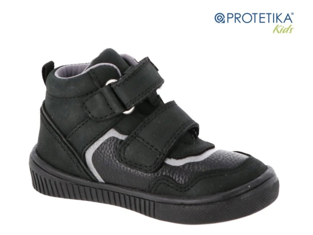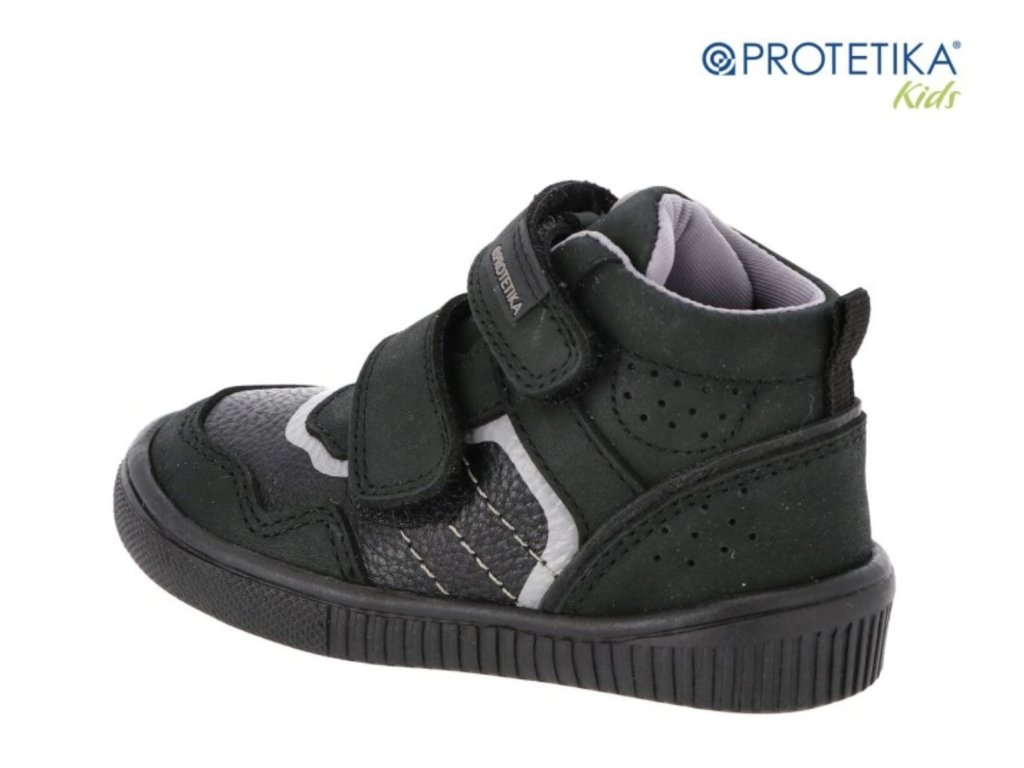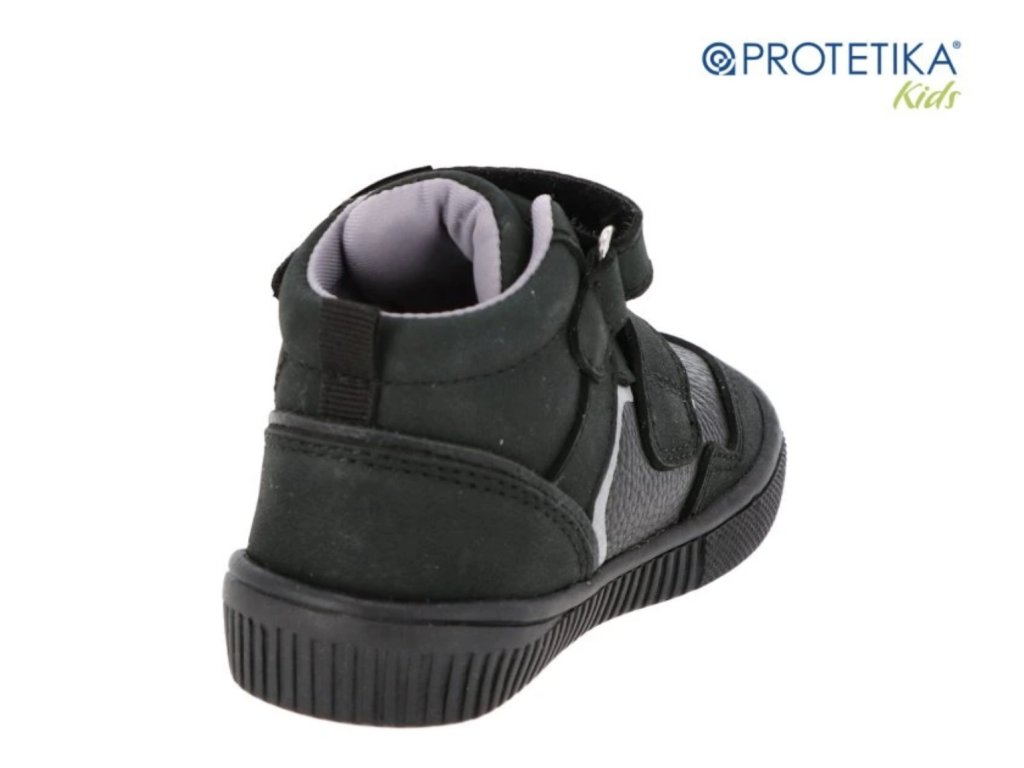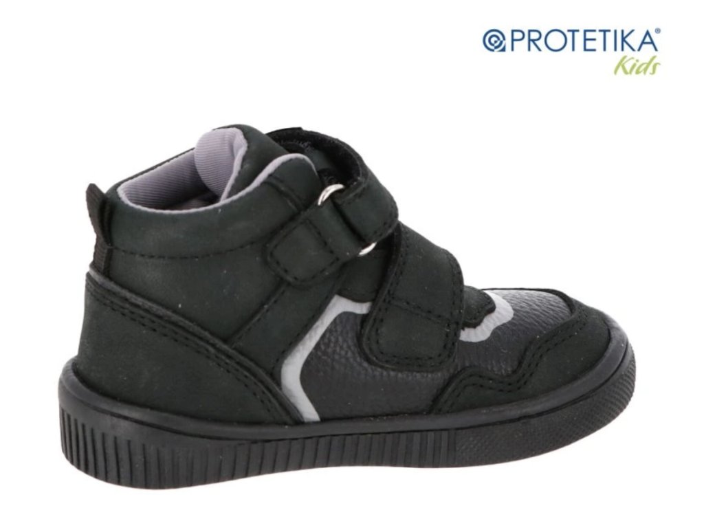 Boty PROTETIKA Niklas Nero jsou chlapecké celoroční z kvalitní přírodní kůže s měkkým límcem a pevnou patou pro stabilitu. Zapínají se na dva suché zipy, které usnadňují obouvání i přizpůsobení. Vyjímatelná kožená stélka s mírnou podporou klenby a protiskluzová, pružná podrážka zajišťují pohodlí a bezpečí při každém kroku.