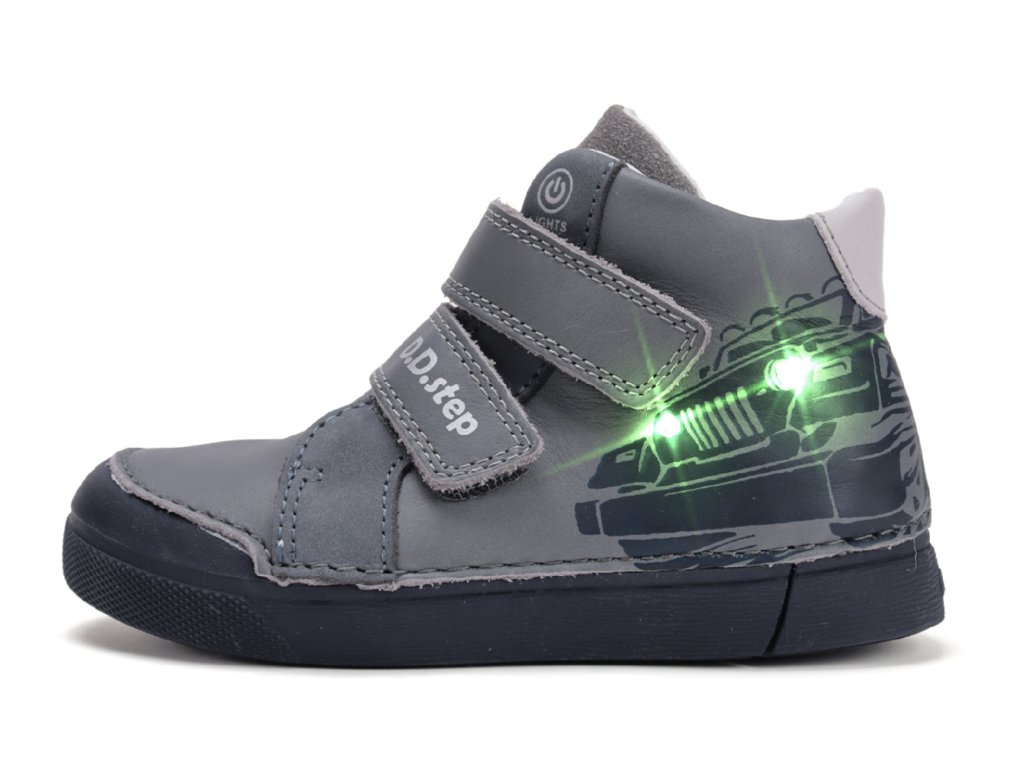 D.D.Step A068-52151 Grey – chlapecké celoroční boty s LED světélky