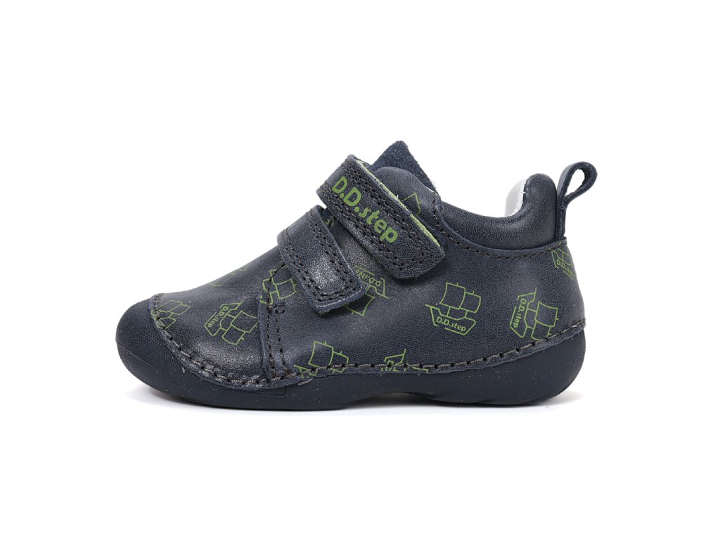 Celoroční obuv D.D.step S015 je kožená obuv, která spojuje vlastnosti barefoot a klasického stylu. Má širší přední část, dostatek prostoru pro prsty, ohebnou podrážku a pevný opatek pro stabilitu nohy a kotníku. Obuv se zapíná na dva suché zipy, které umožňují pohodlné a bezpečné upevnění na noze. Je vybavena tenkou gumovou podrážkou, koženým vnitřkem, stélkou i svrchní částí. Tyto boty jsou ideální pro normální i širší nohy a také pro vyšší nárt.