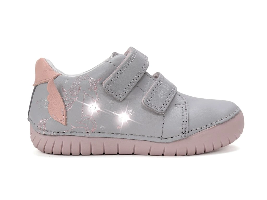 Dívčí celoroční obuv D.D.STEP S050-61970B Dove Grey zaujme kombinací kvalitní kůže a moderního designu. Lehká a pohodlná konstrukce dopřeje dětem komfort při každodenním nošení do školy i na procházky. Hravým prvkem jsou svítící LED diody, které dodají každému kroku zábavný efekt a děti si je okamžitě oblíbí.