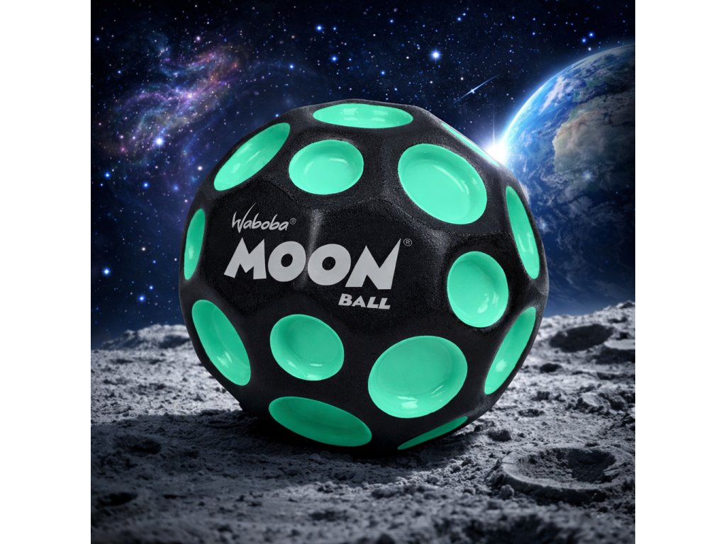 Hyperskákací míček Waboba Dark Side of the Moon zaujme originálním kráterovým povrchem, který zajišťuje velmi vysoké a nepředvídatelné odrazy. Je vyroben z odolné gumy a při dopadu vydává charakteristický „pop“ zvuk, který dělá hru ještě zábavnější. Skvěle se hodí na venkovní hry pro děti i dospělé.