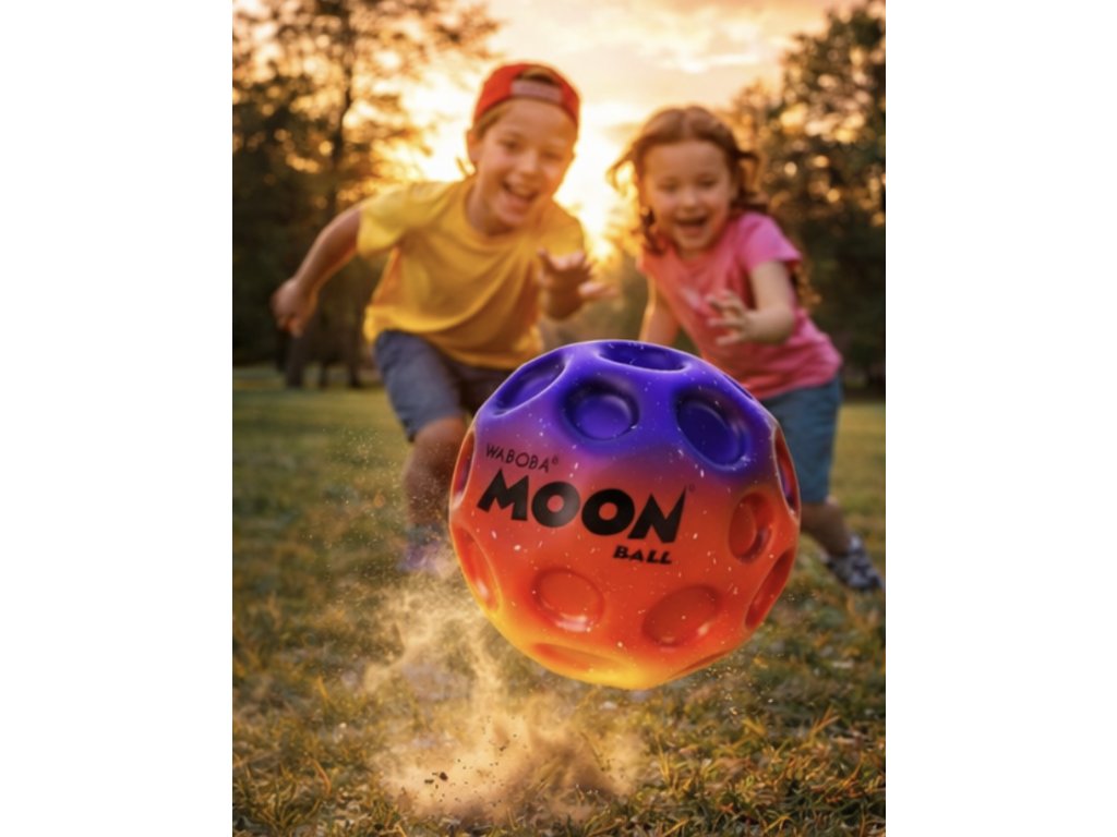 Hyperskákací míček Waboba Dark Side of the Moon zaujme originálním kráterovým povrchem, který zajišťuje velmi vysoké a nepředvídatelné odrazy. Je vyroben z odolné gumy a při dopadu vydává charakteristický „pop“ zvuk, který dělá hru ještě zábavnější. Skvěle se hodí na venkovní hry pro děti i dospělé.
