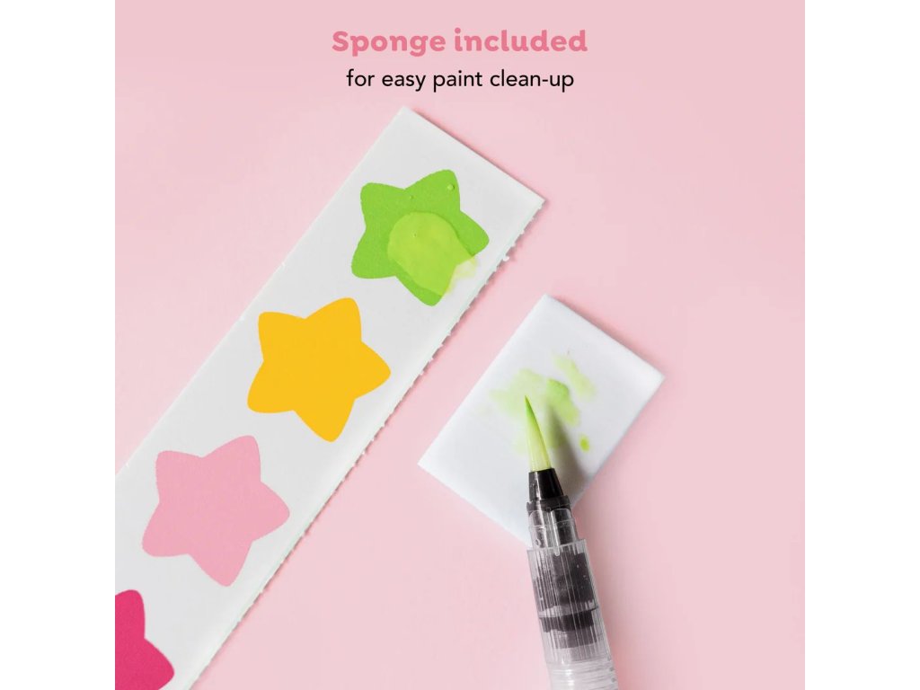 Praktické příslušenství: vodní štětec a houbička pro jednoduché a čisté malování.