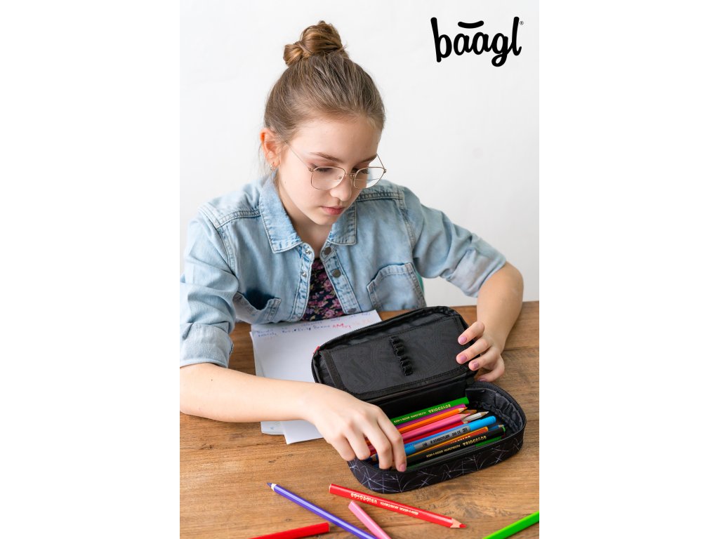 - Pevný školní penál Baagl s výklopnou vnitřní přepážkou.
