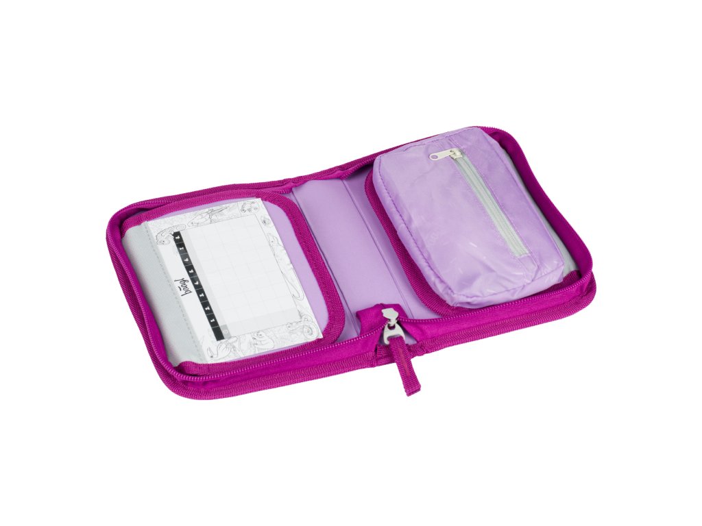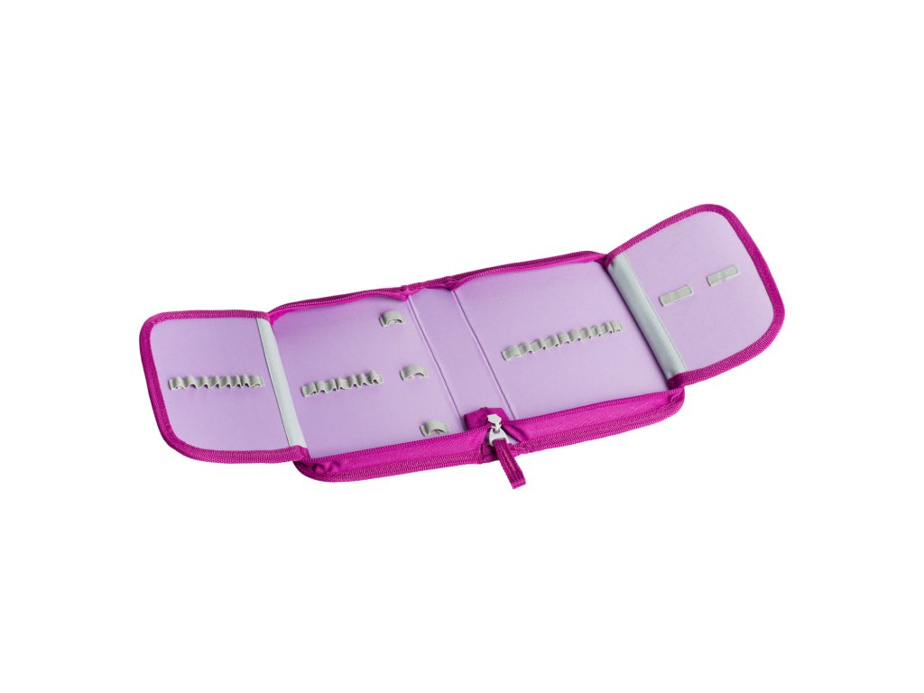 Uvnitř najdete dva přehledné chlopně a praktický organizér, který pomůže udržet tužky, pastelky nebo fixy pěkně uspořádané. Nechybí ani speciální kapsička na nůžky, ořezávátko nebo další drobnosti, které by se jinak mohly ztratit.