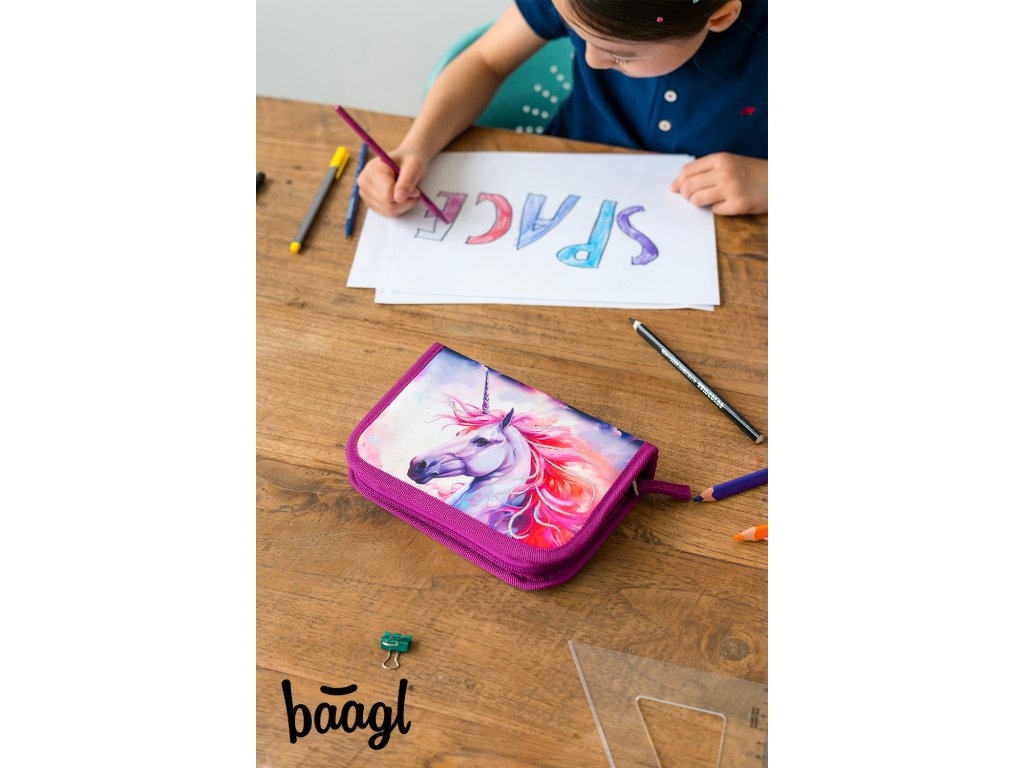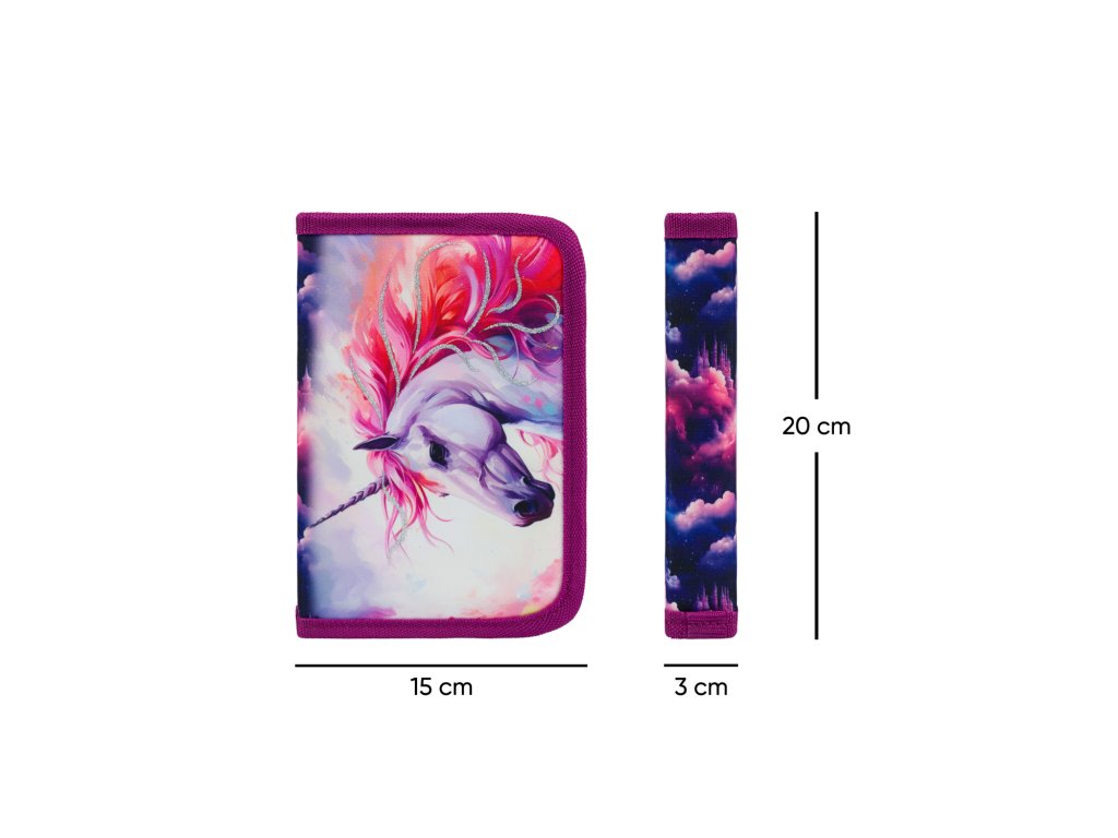 Hledáte praktický školní penál pro děti s oblíbeným motivem? Tento jednopatrový penál s motivem jednorožce potěší každou malou školačku a nabídne dostatek prostoru pro psací potřeby i drobné školní pomůcky.