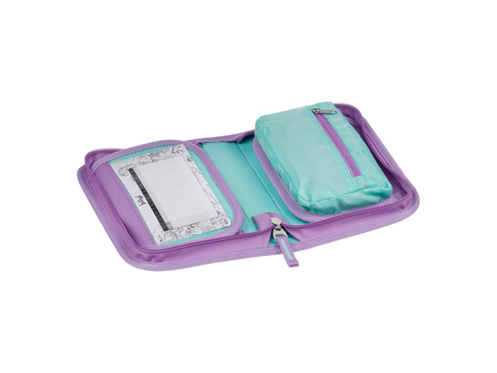 Praktický jednopatrový penál s promyšleným rozložením a dvěma vnitřními chlopněmi nabízí dostatek prostoru pro každodenní školní potřeby.