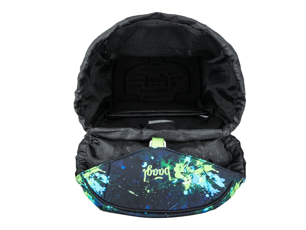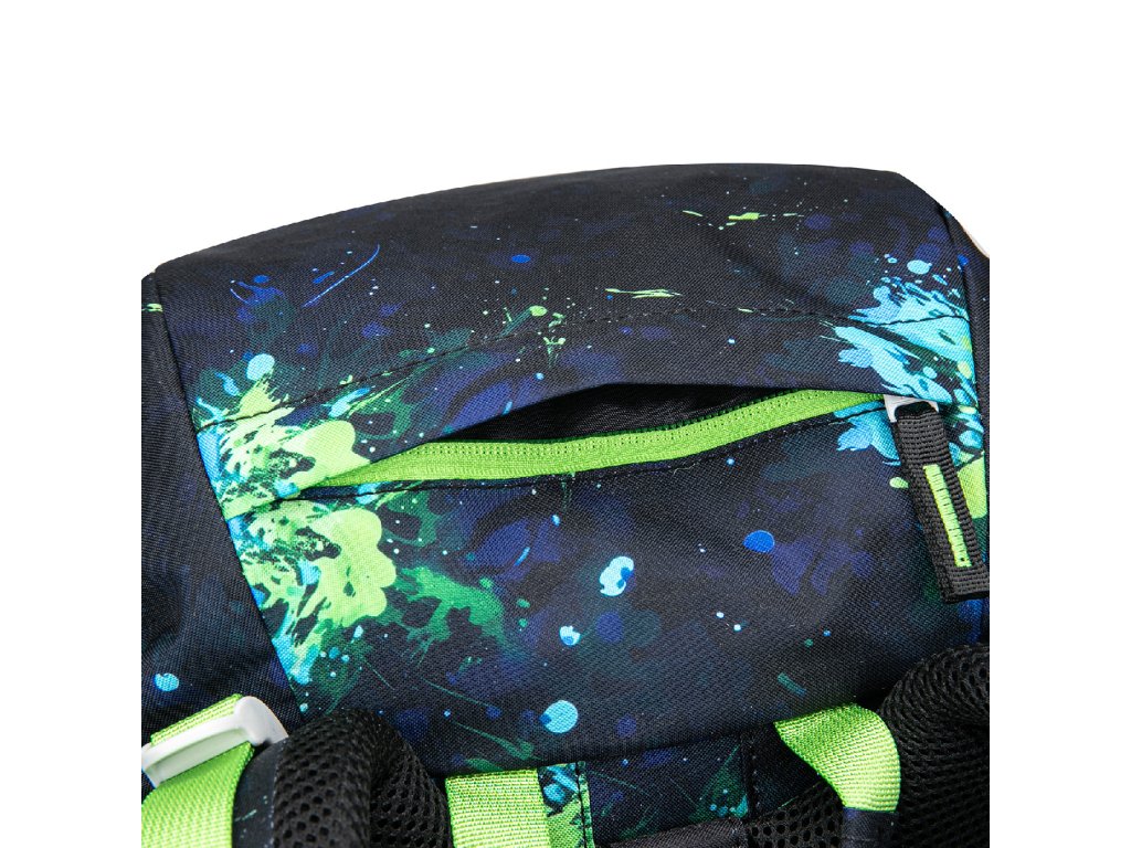 Hlavní komora s organizérem a ochrannými deskami pomáhá udržet učebnice a sešity přehledně uspořádané a chráněné.