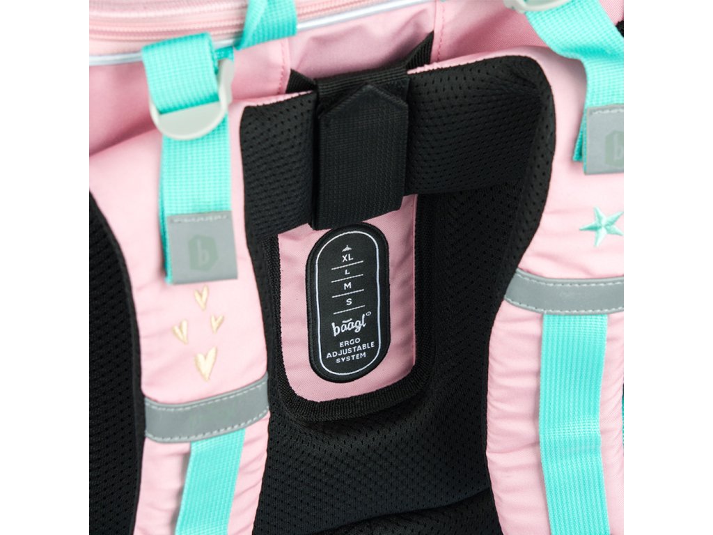 Ergo Adjustable System – posuvný zádový systém umožňuje nastavení optimální polohy popruhů podle výšky dítěte.